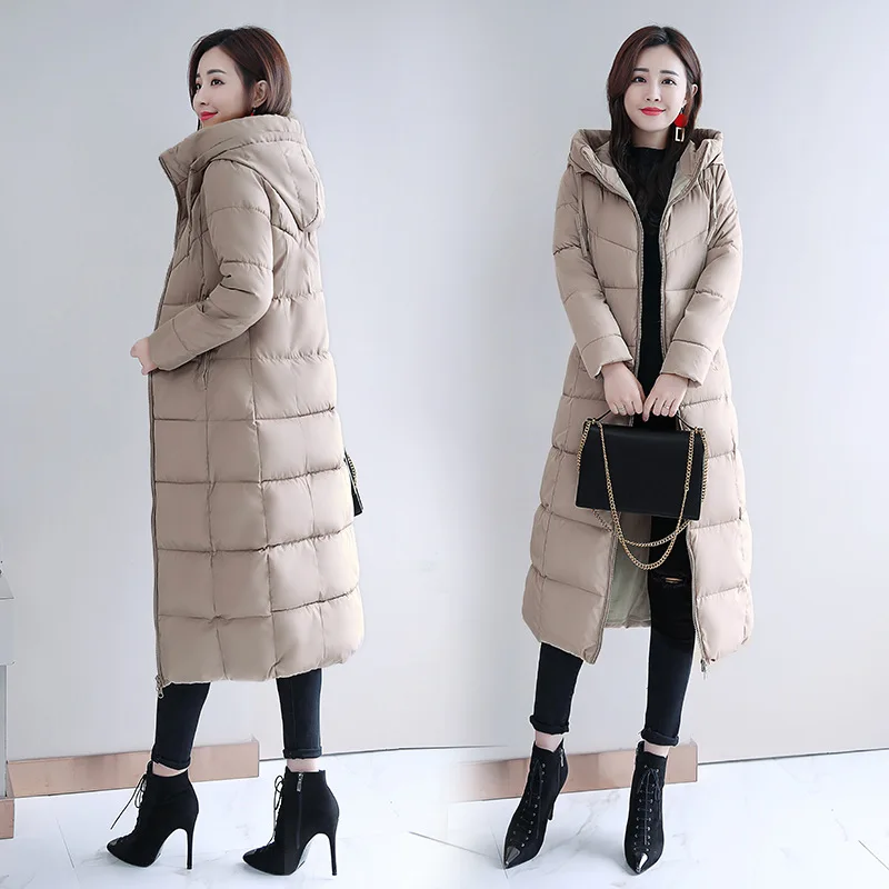 Женское зимнее пуховое пальто, длинная стеганая одежда, однотонная ...