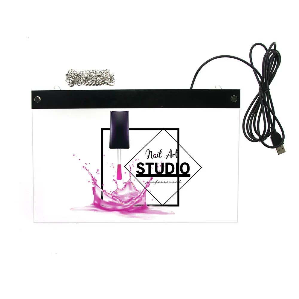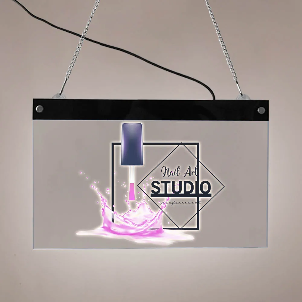 Nail Art студия Печатной Светодиодный светильник на Бизнес Дисплей знак Красота салон для ногтей маникюр световой прямоугольник Дисплей светильник доска