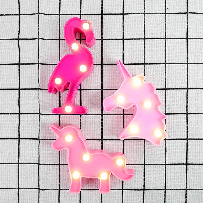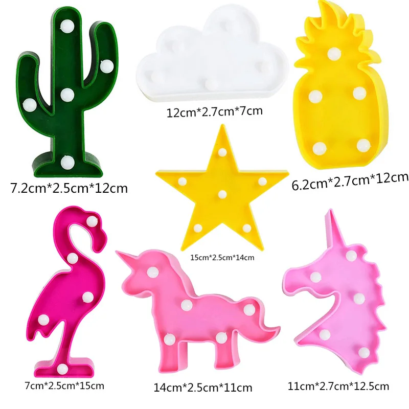 Мультяшный светильник светодиодный Единорог Фламинго ананас кактус ...