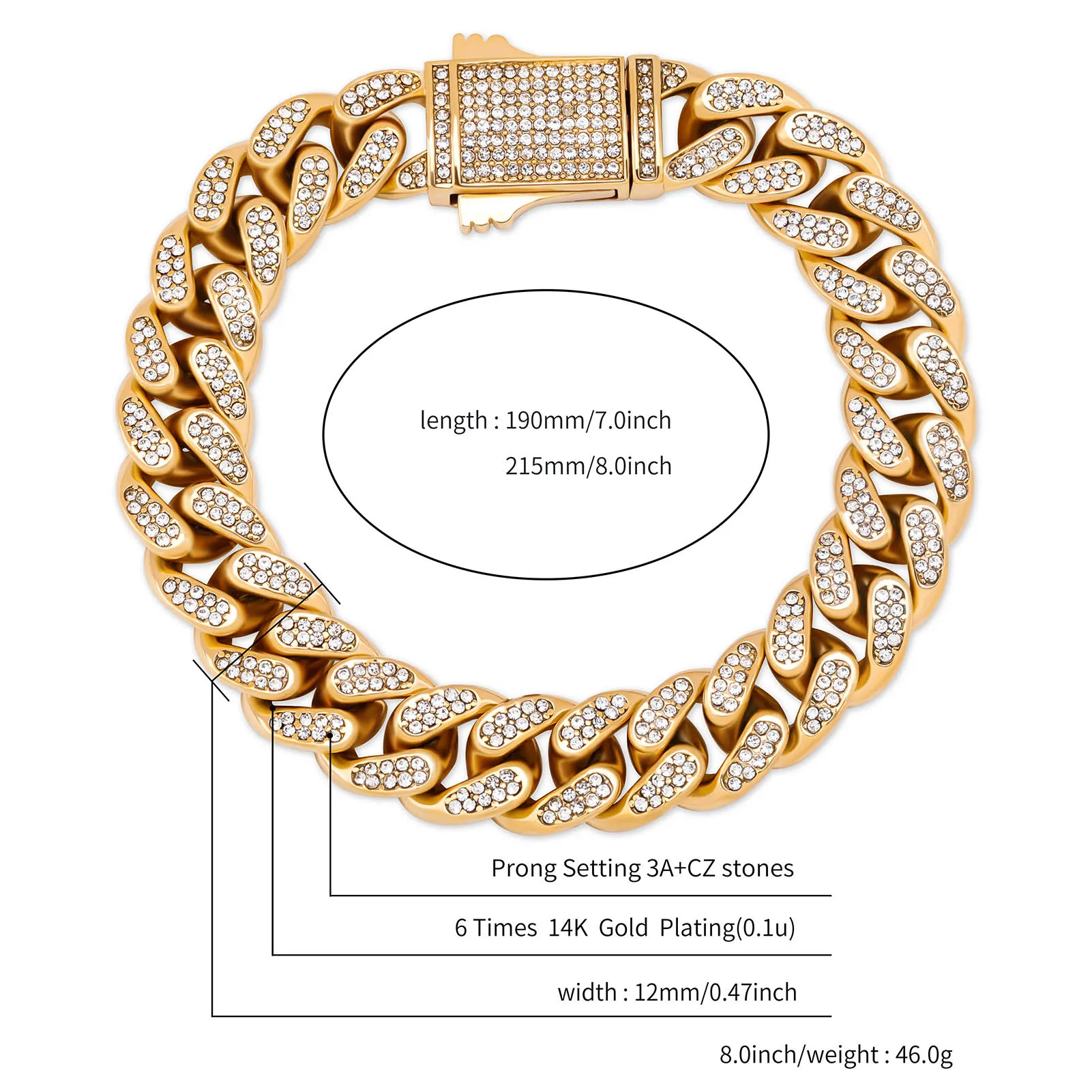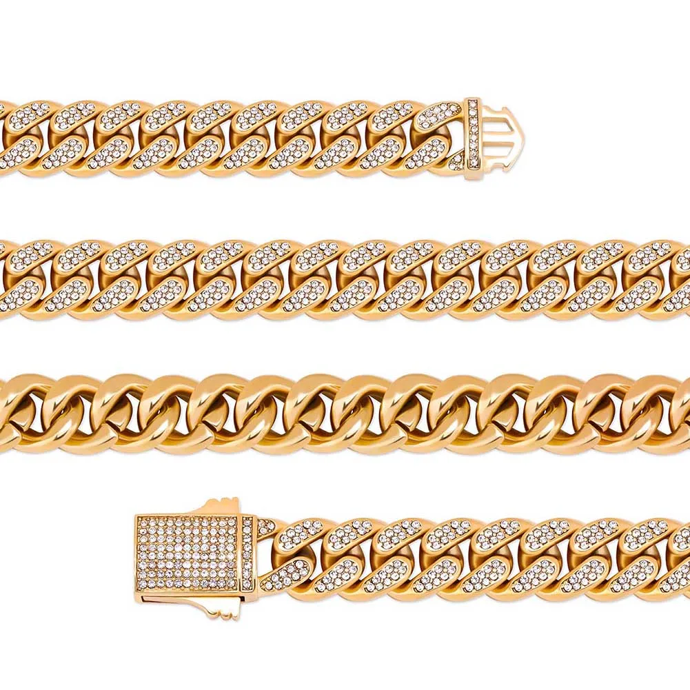 TOPGRILLZ, новинка, 12 мм, нержавеющая сталь, Miami, кубинский браслет с пружинной застежкой, кубический цирконий, хип-хоп ювелирные изделия, подарок для мужчин
