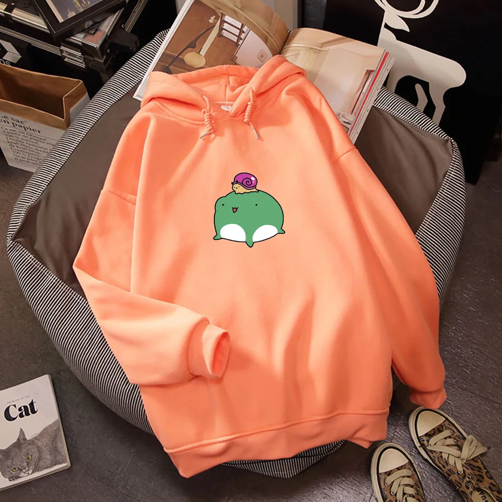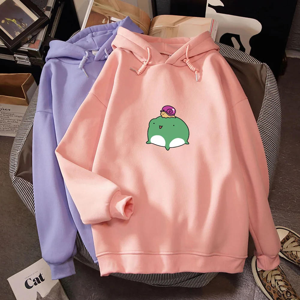 Толстовки большого размера с принтом лягушки, милые толстовки с капюшоном в стиле Харадзюку, Зимние Повседневные винтажные искусственные корейские толстовки