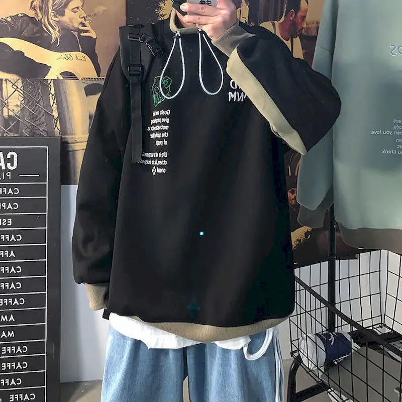 Для мужчин; Воротник-стойка с воротником-стойкой, корейский стиль свободные подчеркивающая индивидуальность; Пара топ Японская уличная одежда Для мужчин; Одежда для отдыха; Одежда в стиле Харадзюку