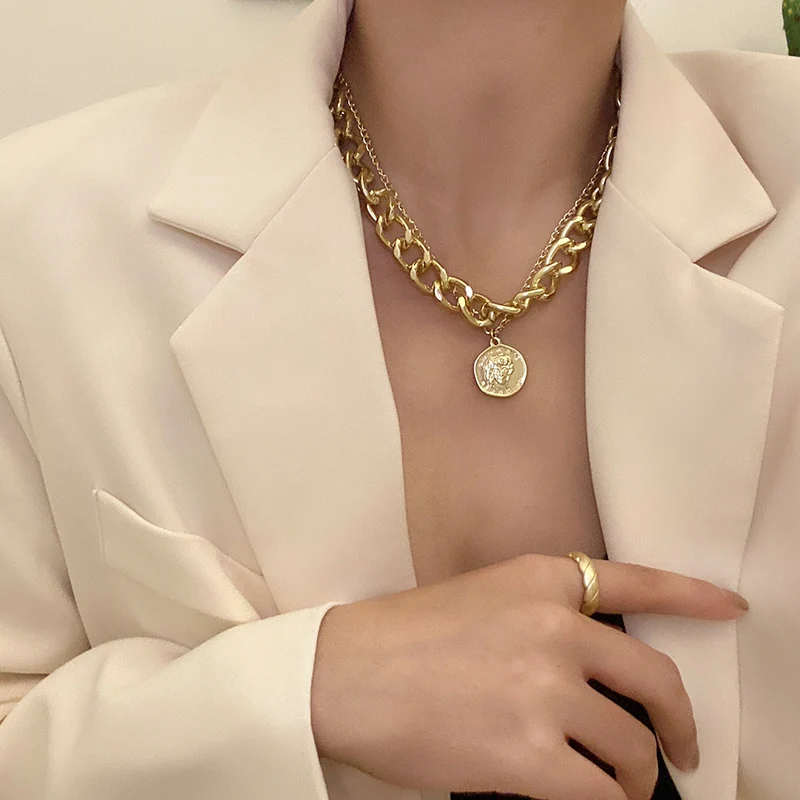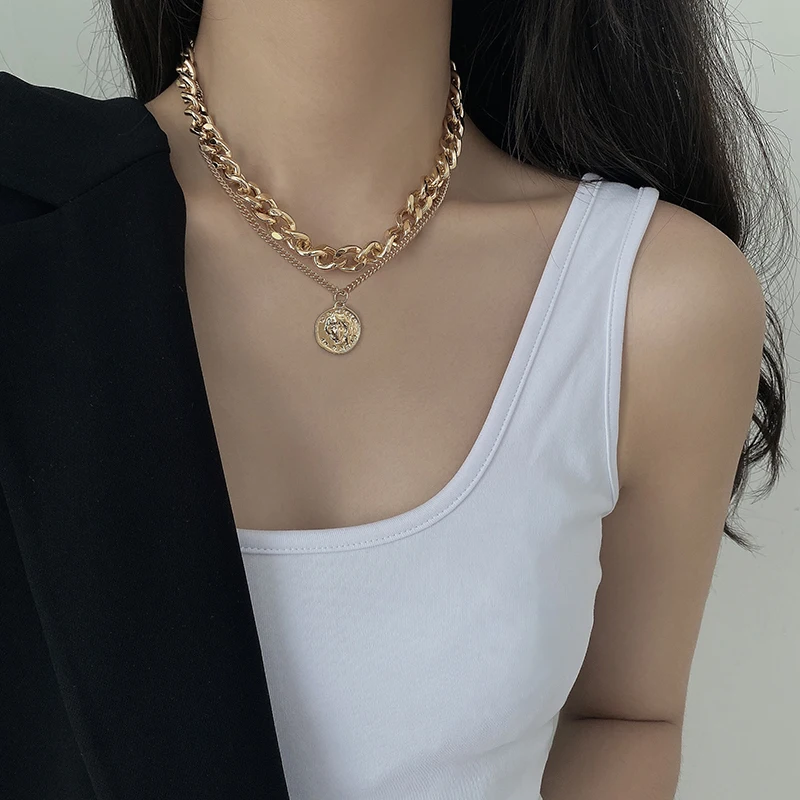 Mveifol Панк многослойная монета с портретом кулон ожерелье для женщин Толстая кубинская цепь Чокер-ожерелье в стиле панк ювелирные изделия