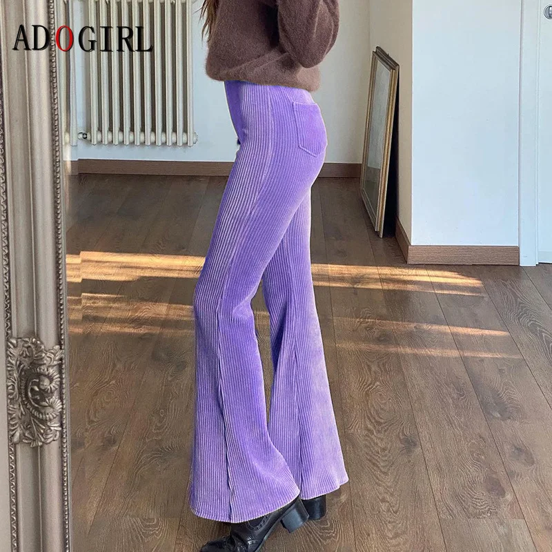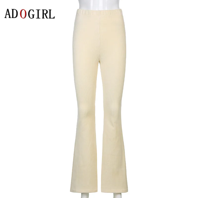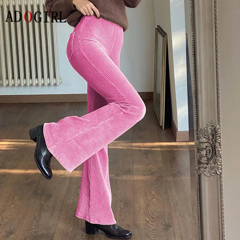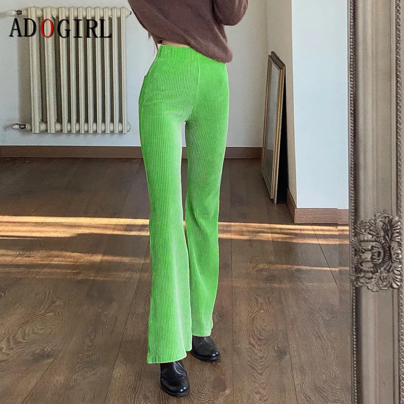 Adogirl Элегантные Женские однотонные вельветовые штаны; Модные яркие леггинсы с высокой талией женские офисные брюки уличная размера плюс