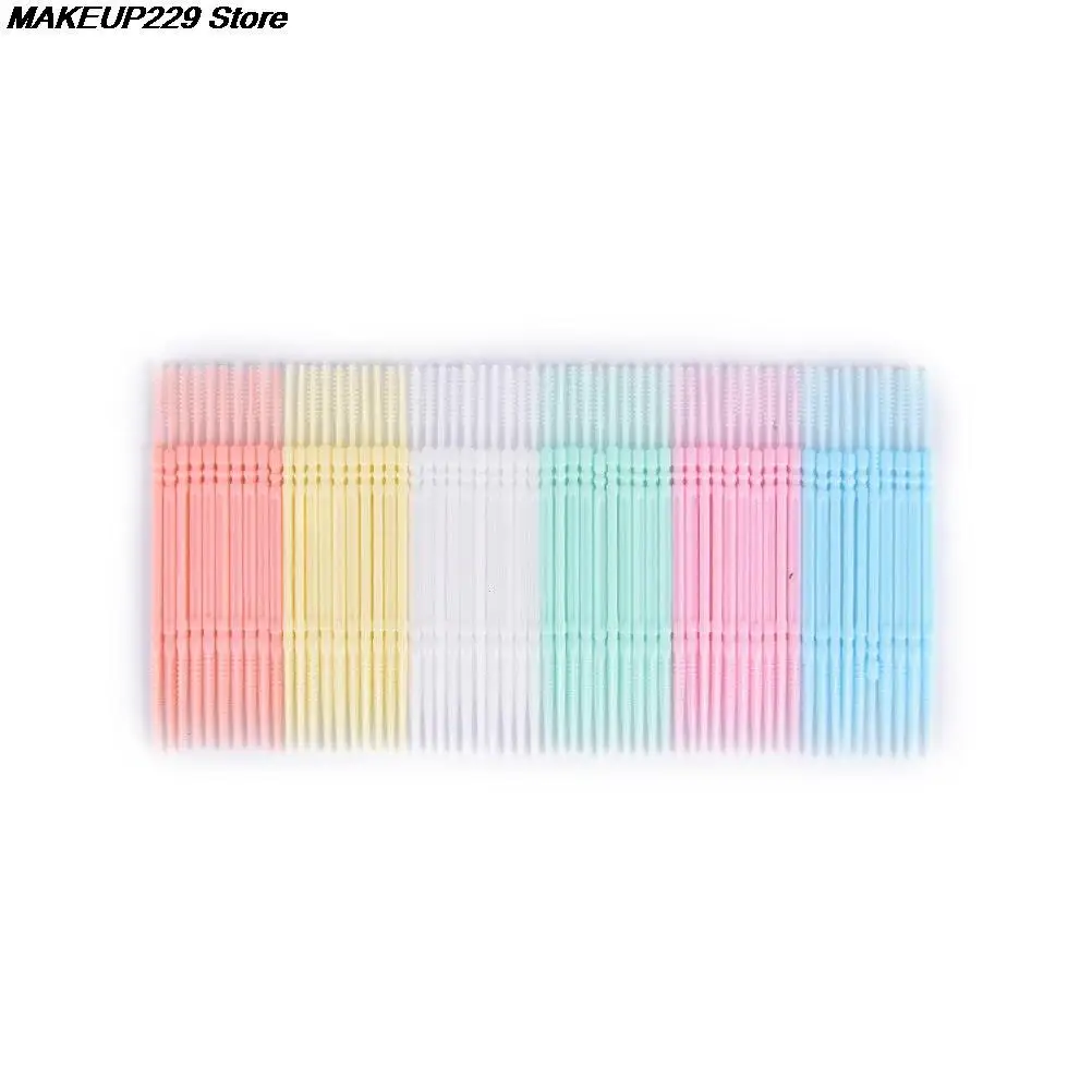 100pc мягкие Пластик зубная щетка с двумя головками и кисточка палочка нить Палочки зуб Палочки Уход за полостью рта зубная нить для ухода за межзубным пространством зуб Палочки щетка для размещения между прутьями