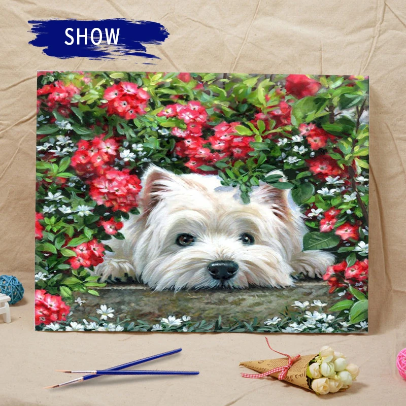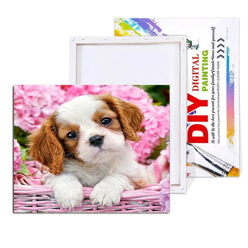 Картина маслом по номерам, набор для рисования с собаками, цветами, холст, акриловая раскраска, животные, ручная роспись, подарок для творчества, домашний декор