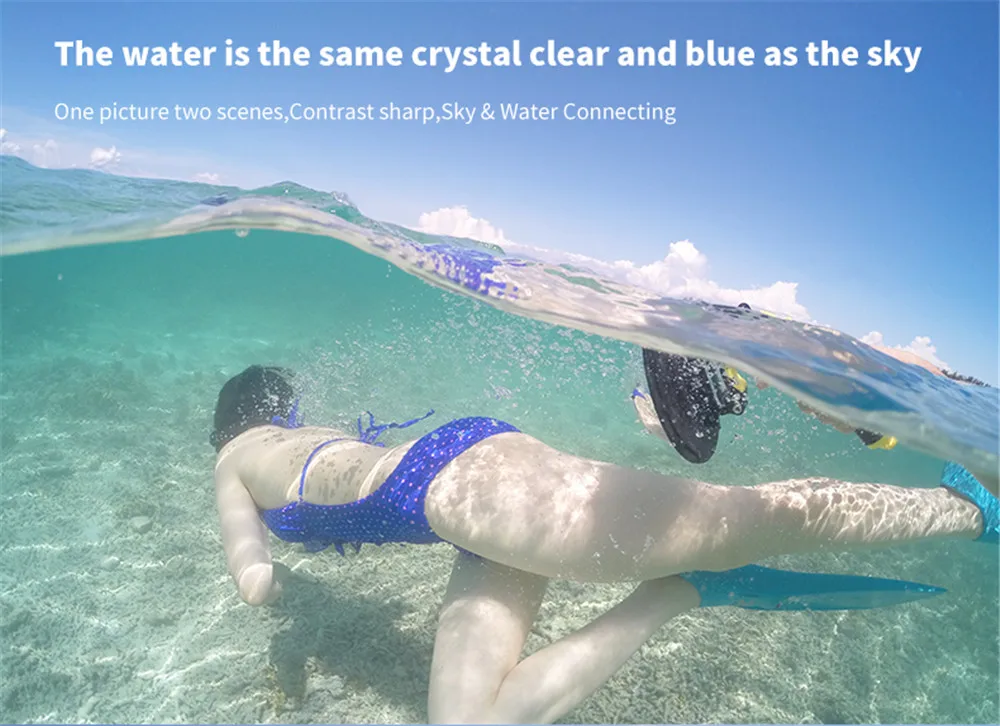 1. Перемещение водной линии от объектива позволяет снимать одновременно изображения как над, так и под водой. 2. Простота работы, практически бесконечная глубина резкости, широкоугольный объектив. 3. Водонепроницаемость на глубине до 30 м, коэффициент пропускасветильник до 93%. 4. Обеспечивает доступ к кнопкам управления режимом, питанием и затвором во время установки, также может использоваться пульт дистанционного управления Wi-Fi. 5. 8-дюймовая светильник Кая плавающая рукоятка со стандартным отверстием для винта 1/4. 6. Супер-удобная ручка из ТПЭ, Отличная мягкость на ощупь, защита от скольжения и экономия труда. 7. Плавающий в воде/использование на земле 8. Ручку можно открутить, чтобы открыть полая часть, которую можно использовать для добавления воды (для достижения нейтральной плавучести под водой) или для хранения мелких предметов. 9. Регулируемый ремешок обеспечивает большую безопасность вашей экшн-камеры 10. Триггер пистолета: простая работа одной рукой 11. Противотуманные вставки предотвращают запотевание корпуса камеры. Высушите естественным путем, многоразовые. 12. Дизайн CD с защитой от отпечатков пальцев: специальный навигационный материал из нержавеющей стали 316, широкая головка кнопки, защита вашей камеры