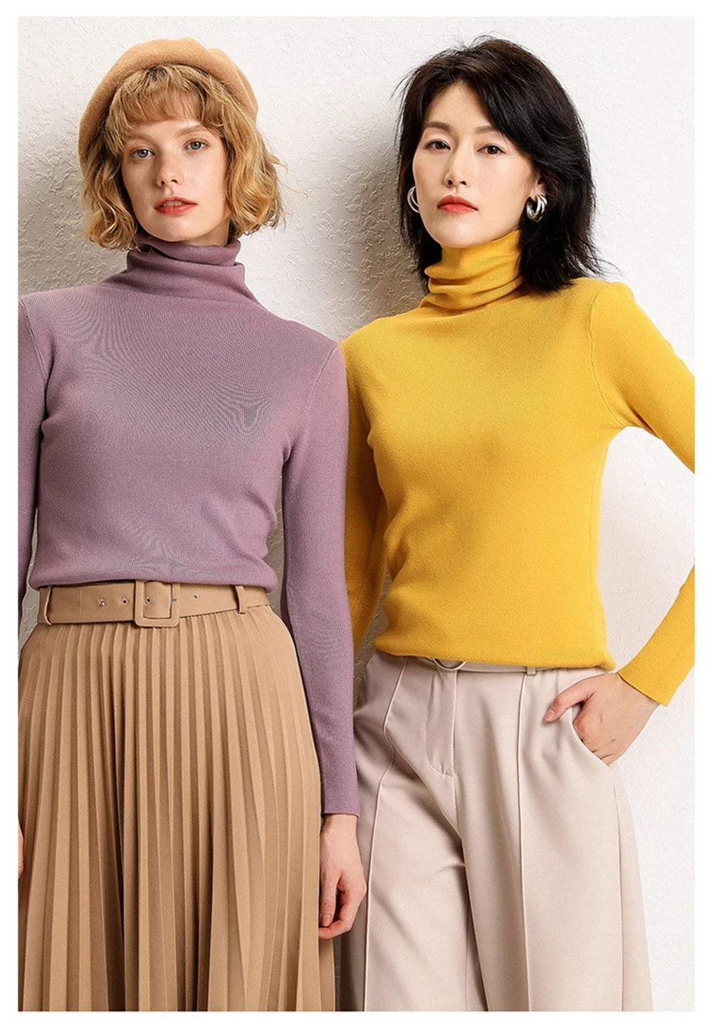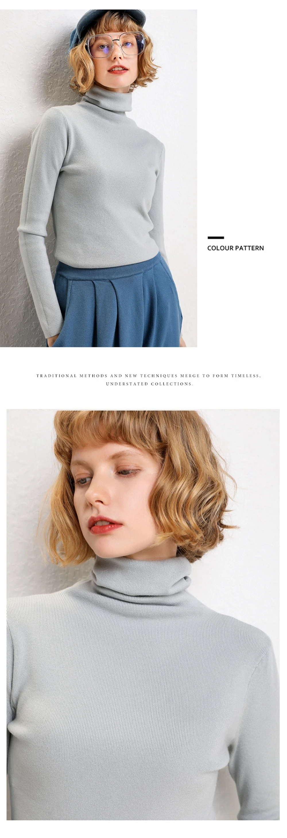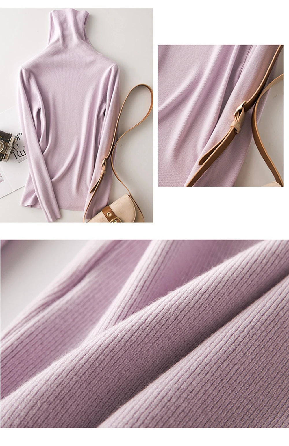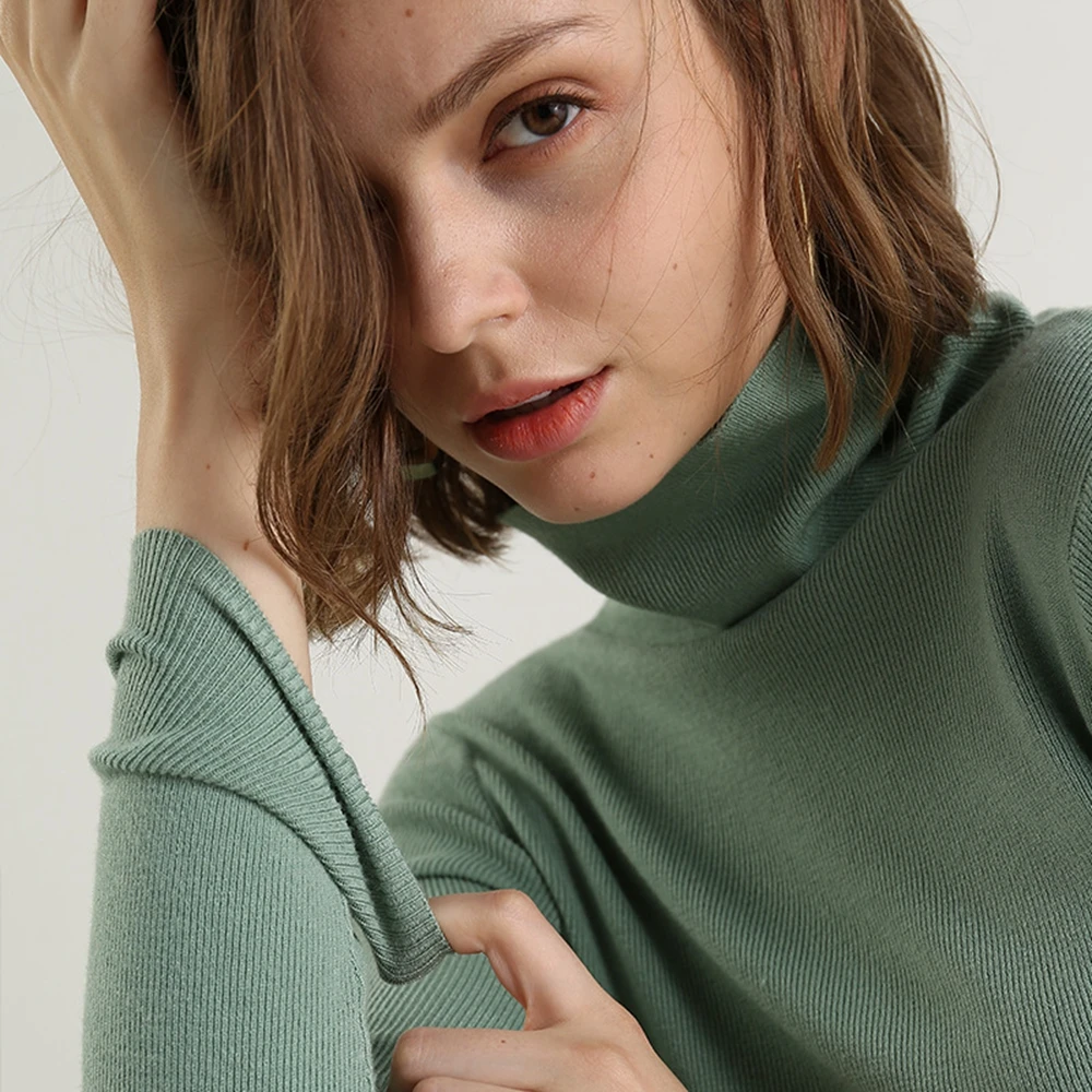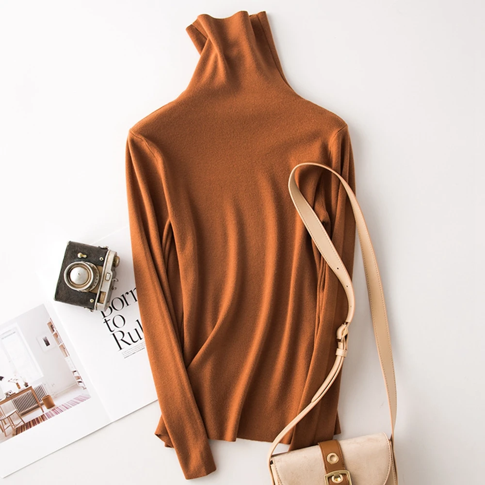 Свитер Женский вязаный, однотонный, с высоким воротом, Осень-зима, 2020