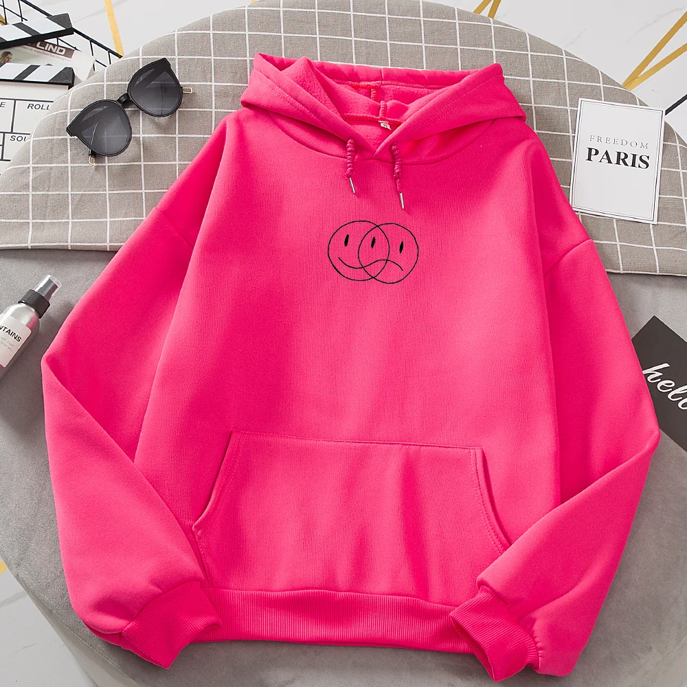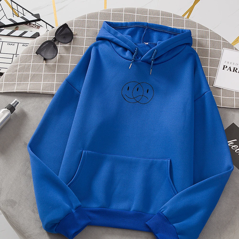 Свитшот уличный корейский для мужчин и женщин, Свободный пуловер в стиле ольччан, Харадзюку, худи с длинным рукавом и принтом улыбки и грустного лица, джемпер