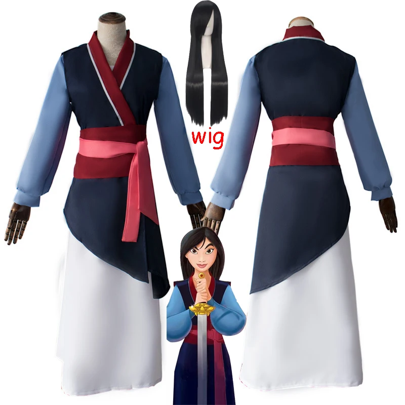 Костюм принцессы Мулан для детей женщин Косплей Мулан длинный парик на Хэллоуин