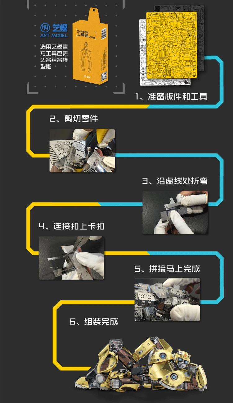 30 видов продукции включают 1-3 металлических листа. Самый простой продукт имеет только один кусок металлического листа и занимает всего 30 минут, в то время как самый сложный продукт имеет 3 куска металлических листов и стоит более 3 часов, чтобы закончить.