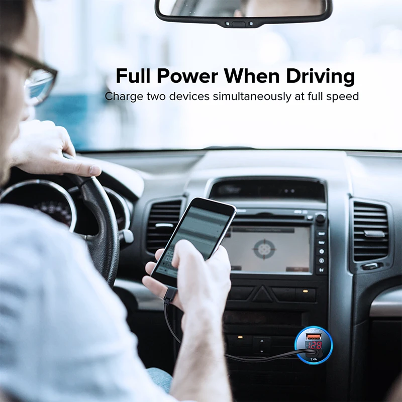 Двойное автомобильное зарядное устройство со светодиодным дисплеем,...