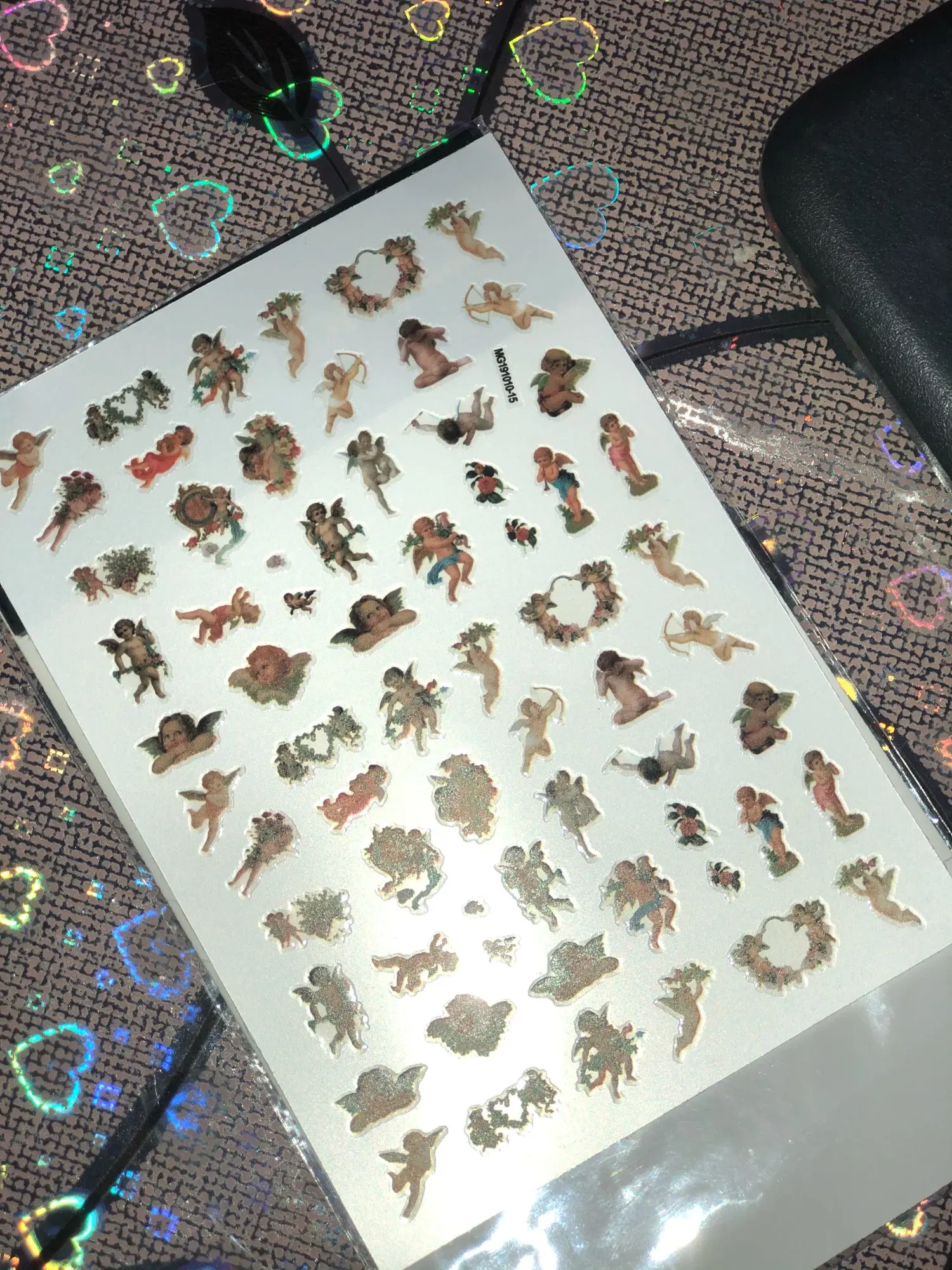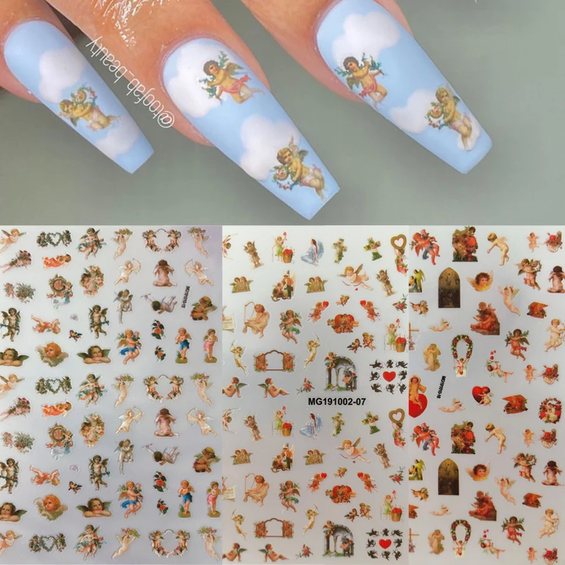 Наклейки для ногтей с ангелом, цветком, самоклеящиеся переводные наклейки, слайдер, 3D наклейки сделай сам, украшения для ногтей, наклейки для маникюра