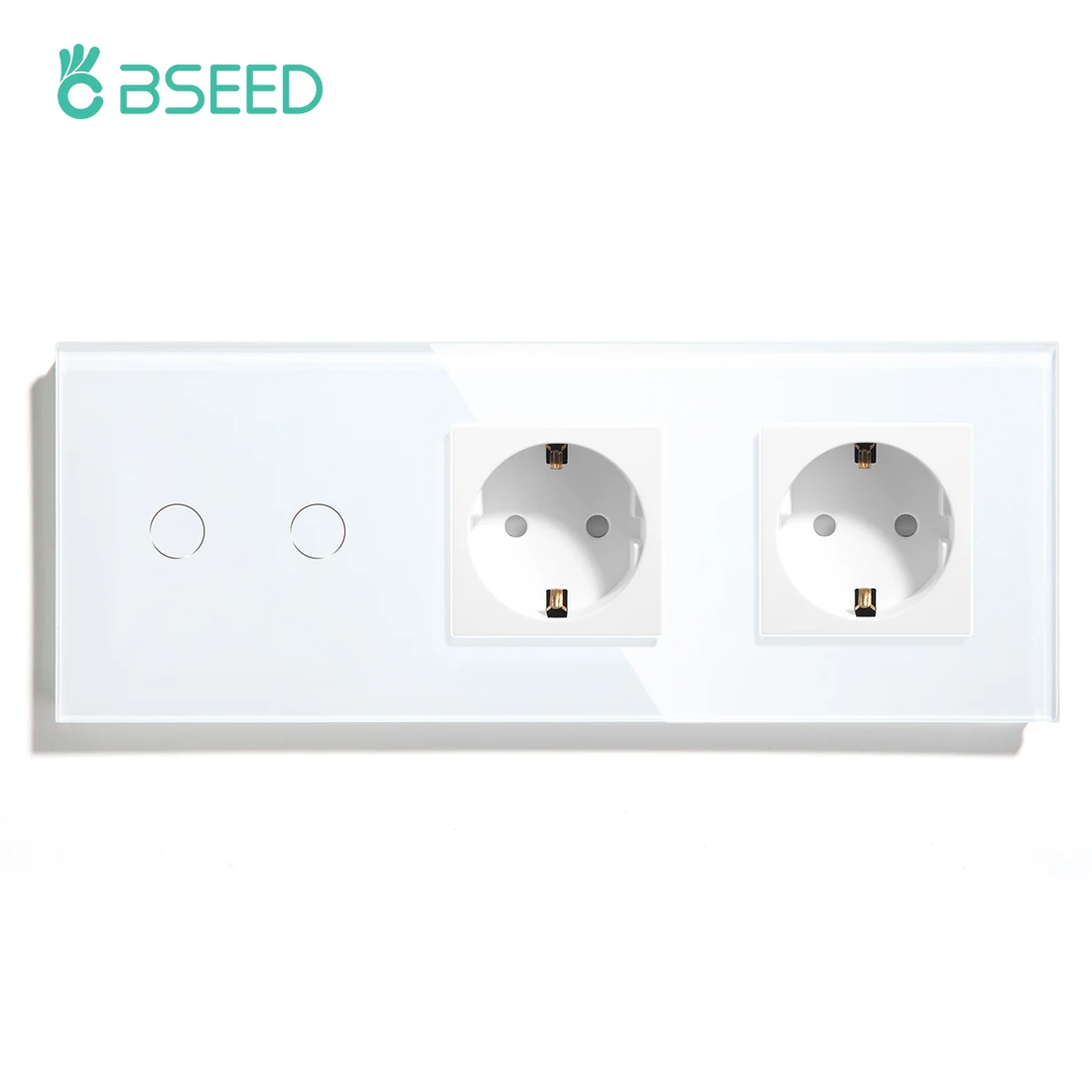 BSEED 2 банды 1 способ ЕС стандартный сенсорный светильник выключатель с настенной розеткой белый черный золотой настенный выключатель Хрустальная стеклянная панель 228 мм