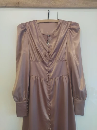 Платье очень хорошее, материал качественный плотный, заказывала коричневый с розовым отливом и очень довольна