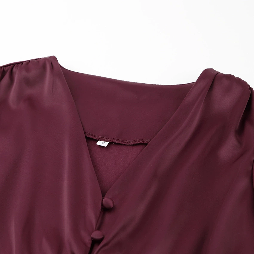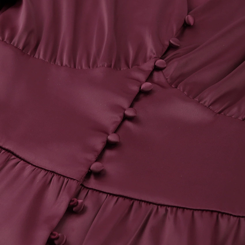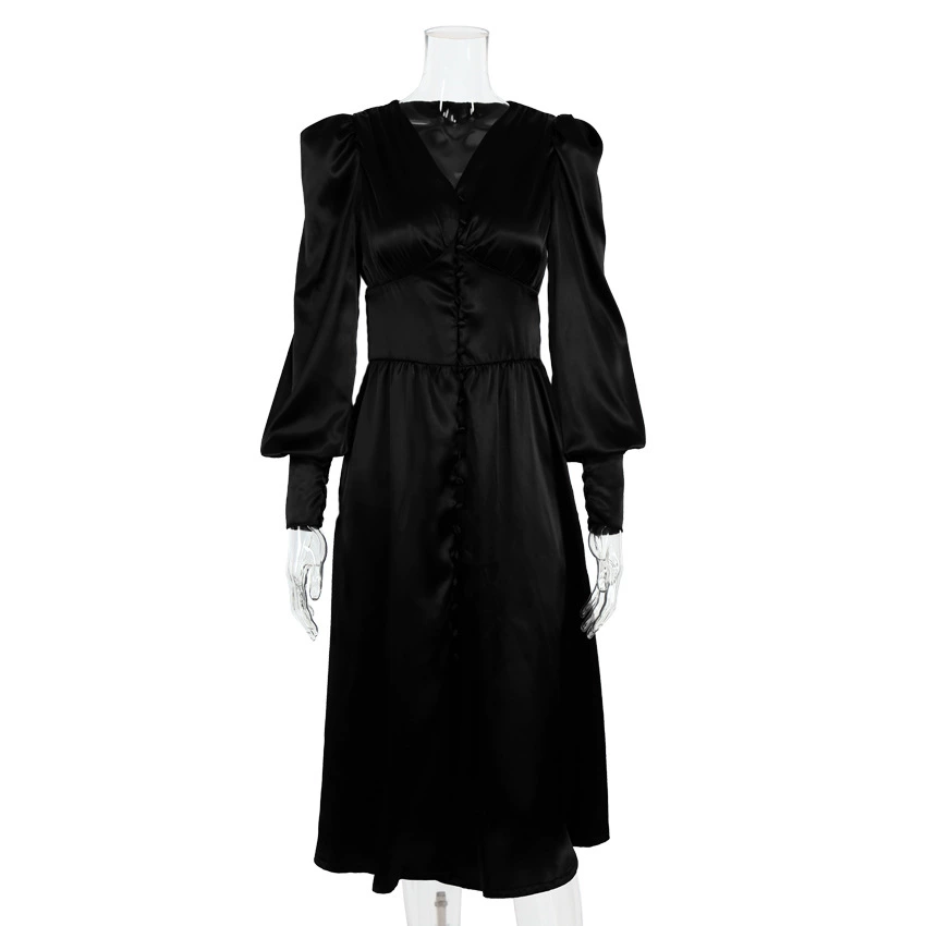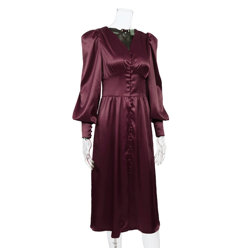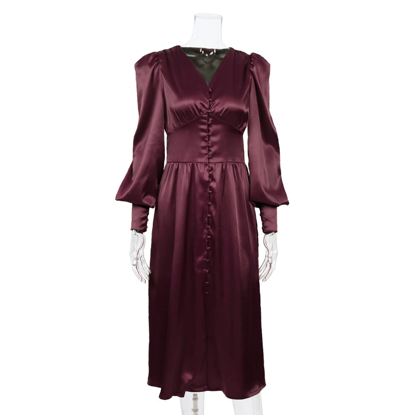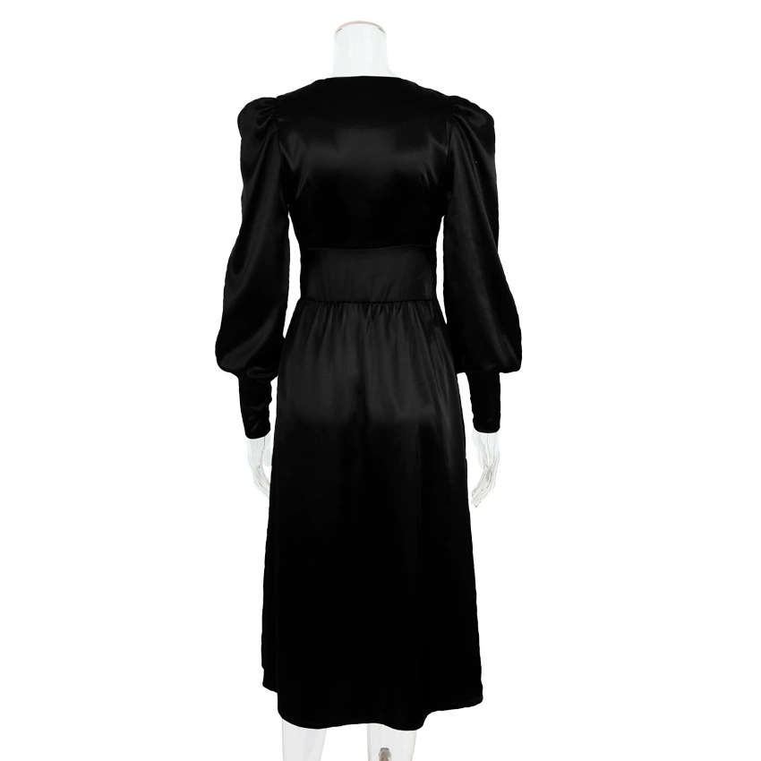 Женское длинное атласное платье, с пышными рукавами и V-образным вырезом, весна нарядное плиссированное платье