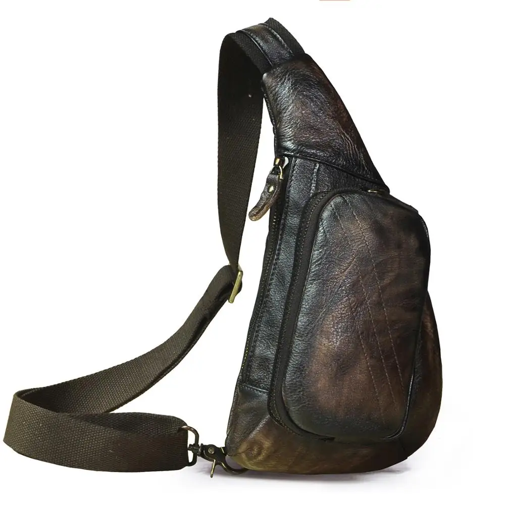 Роскошная Мужская винтажная треугольная нагрудная сумка из натуральной кожи, дизайнерская Мужская Слинг через плечо, рюкзак на одно плечо, рюкзак, 8810