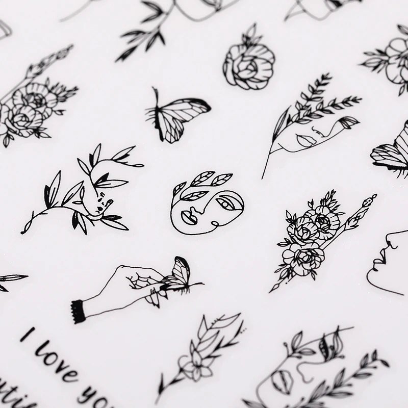 Абстрактные 3D-наклейки на ногти, самоклеящиеся переводные наклейки для ногтей, цветочный лист, цветочный дизайн, декор для ногтей, слайдер, сексуальная насадка для девушек