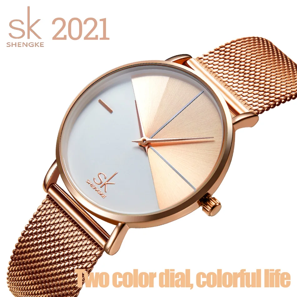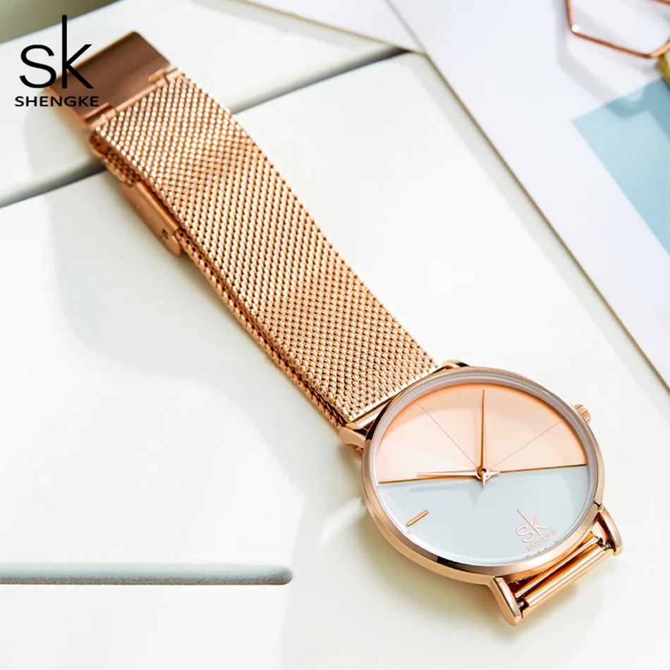 SHENGKE роскошные женские часы цвета розового золота, смешанные цве...