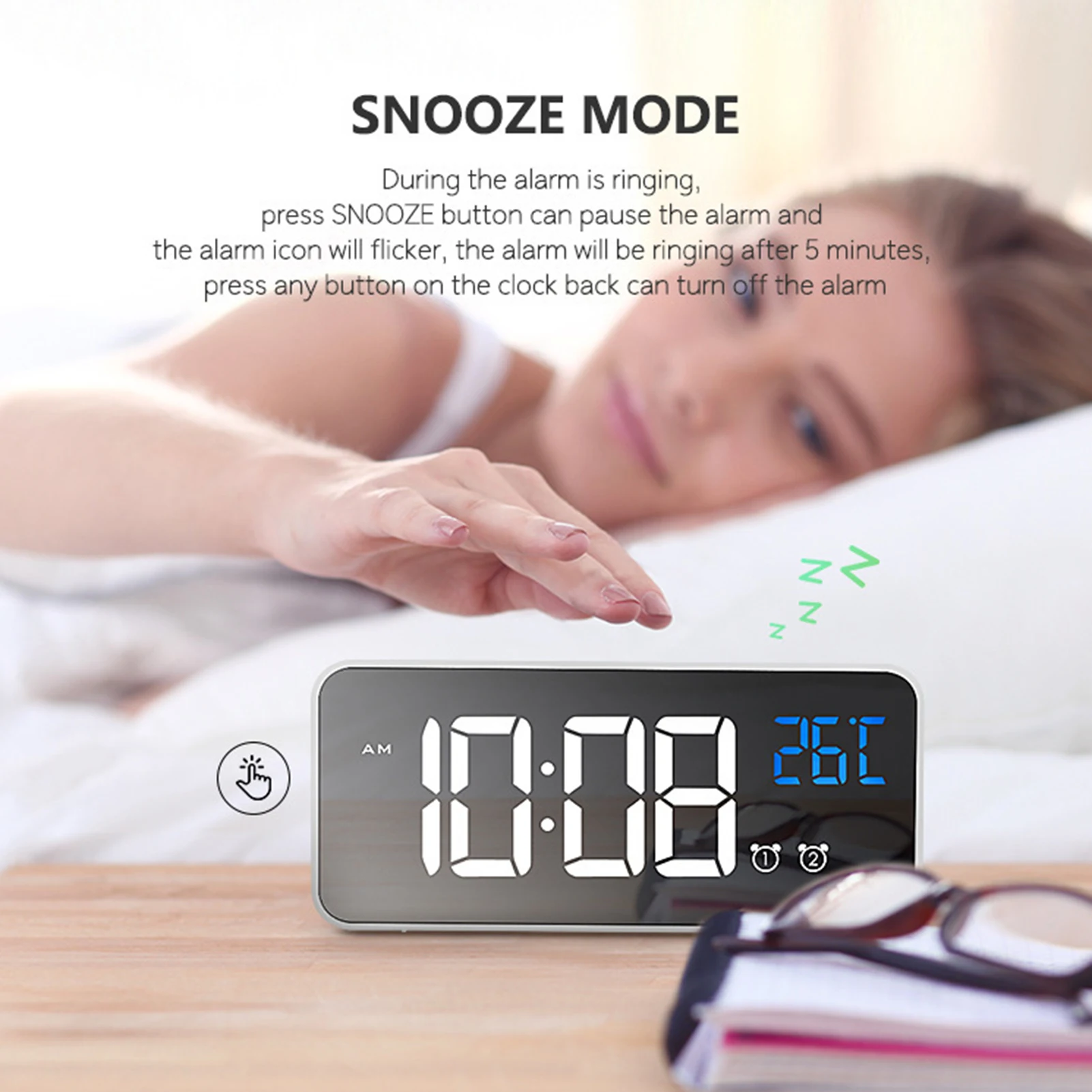 Двойные сигналы с функцией повтора светодиодный зеркальный будильни...
