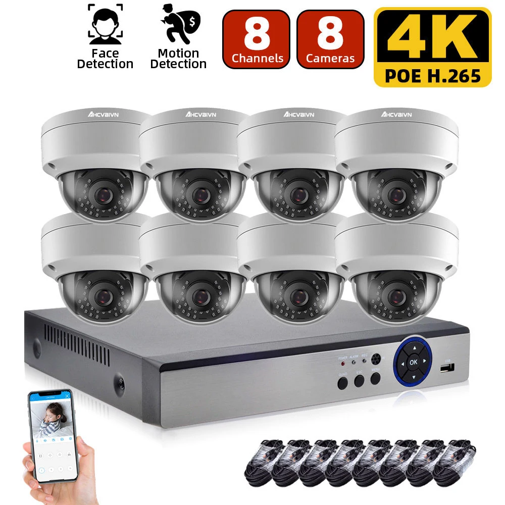 4K NVR комплект 8CH POE CCTV камера система безопасности комплект 8MP наружный купольный комплект видеонаблюдения IP взрывобезопасная камера система Комплект