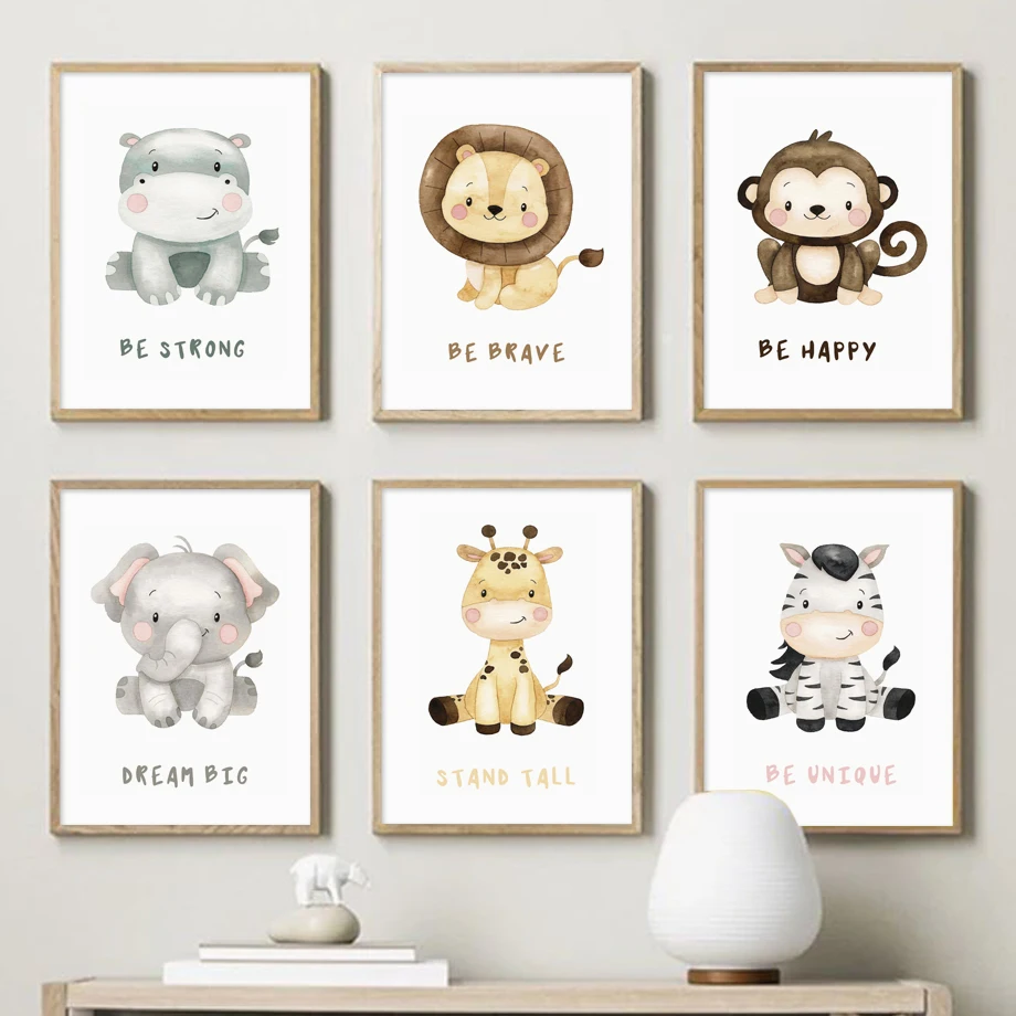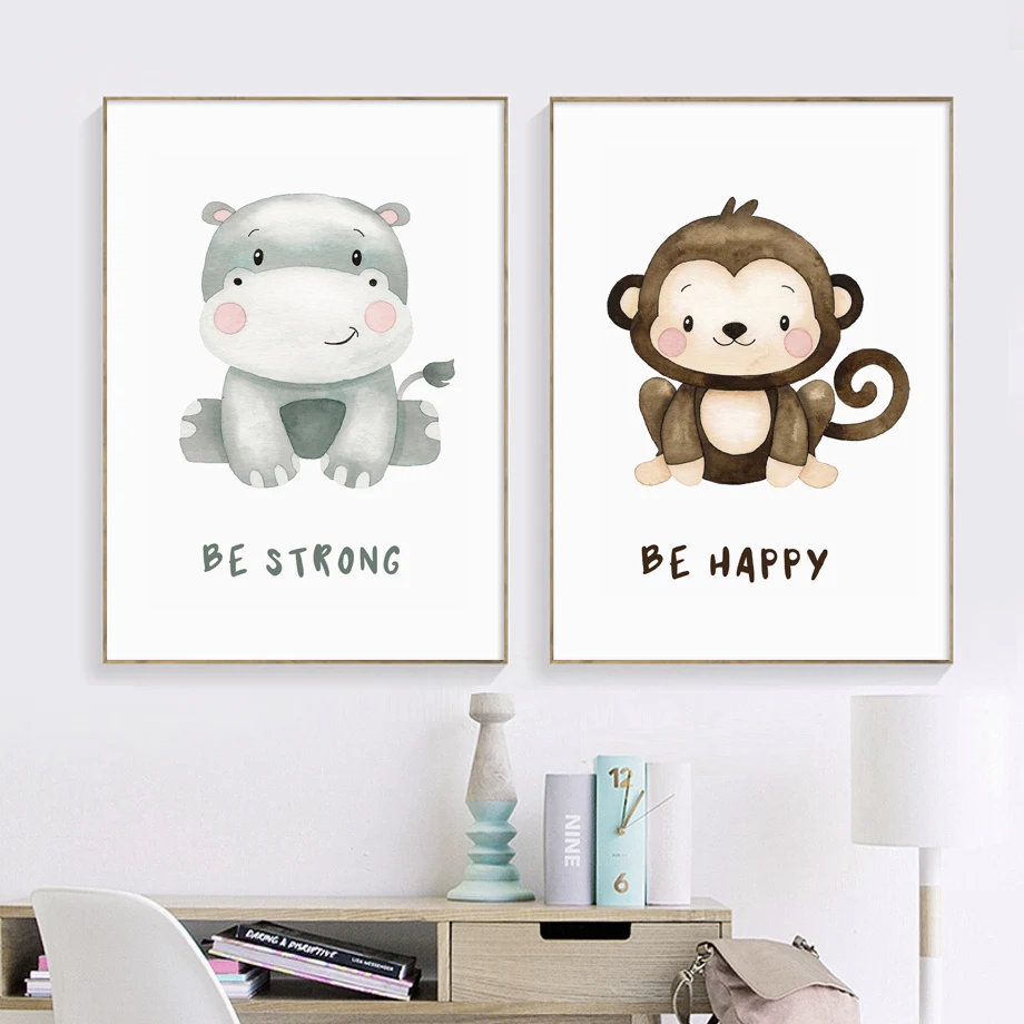 Настенная Картина на холсте мультфильм обезьяна зебра жираф слон скандинавские плакаты и принты настенные картины для детской комнаты домашний декор
