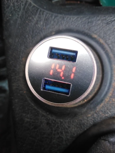 Сначала подумал "а гиде цифирки", а когда воткнул в прикуриватель, то был приятно удивлён, напряжение показывает между слотами и не перескакивает, как в других зарядках, где периодично идёт то напруга, то ток потребления, то ещё какая-то цифра. Очень удобная свистулька. В пежо вообще может быть пиктограмма акб моргнет при запуске и погаснет это значит, что генератор не исправен, а ты дальше едешь и ни о чем не думаешь, а здесь постоянно бортовое напряжение видно.