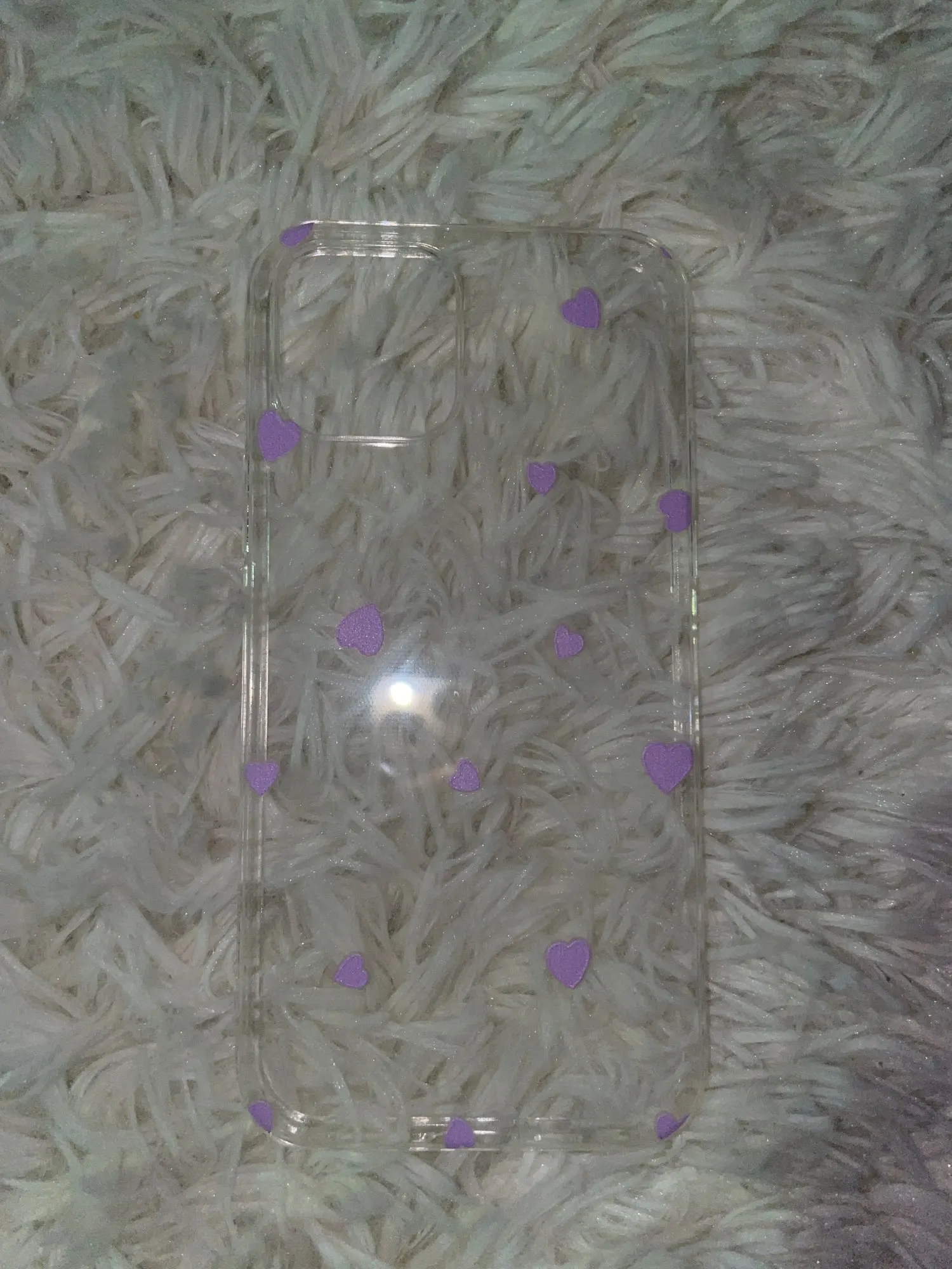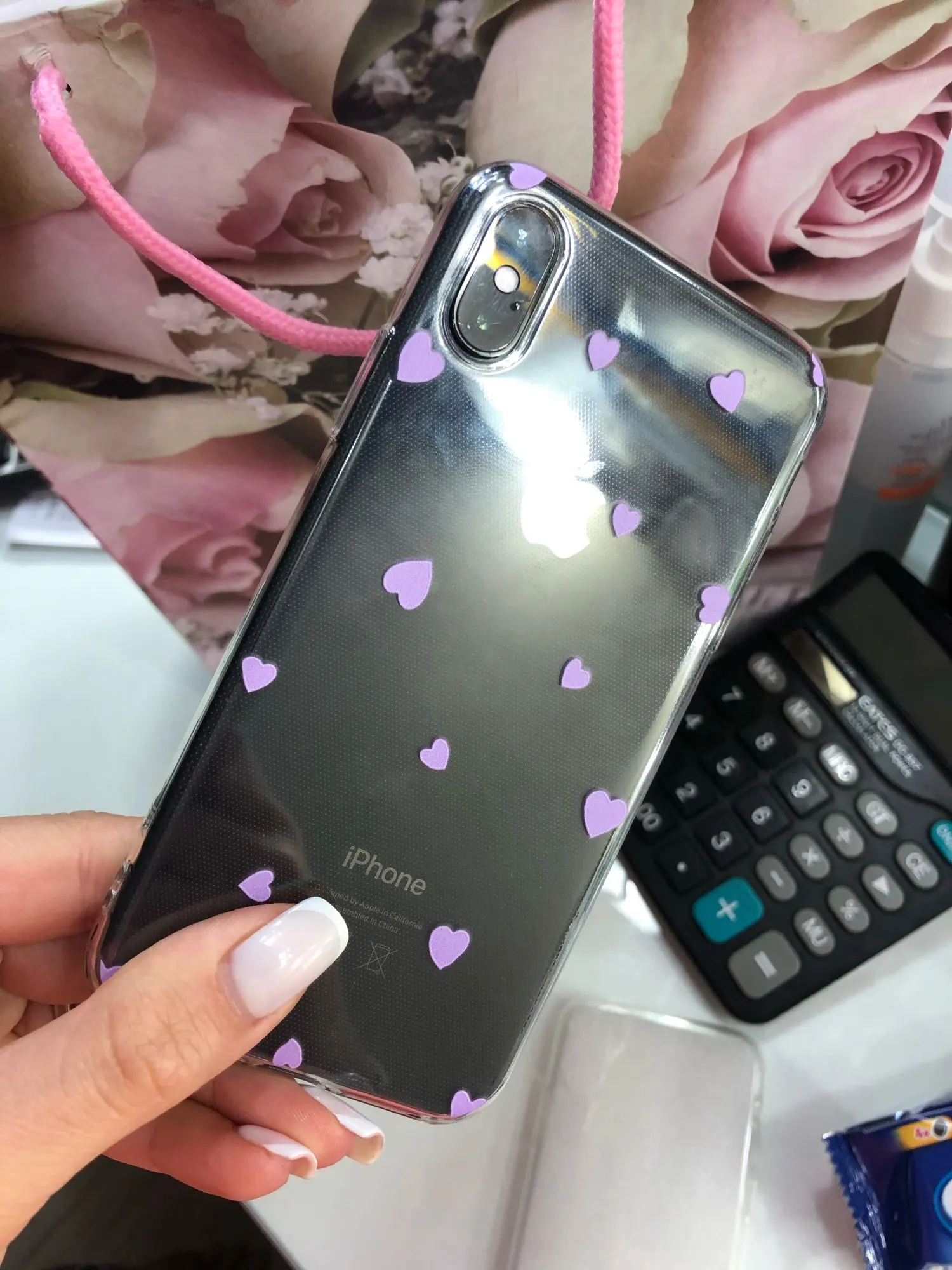 Супер удобный чехол, розовые сердечки на фиолетовом цвете выглядят великолепно