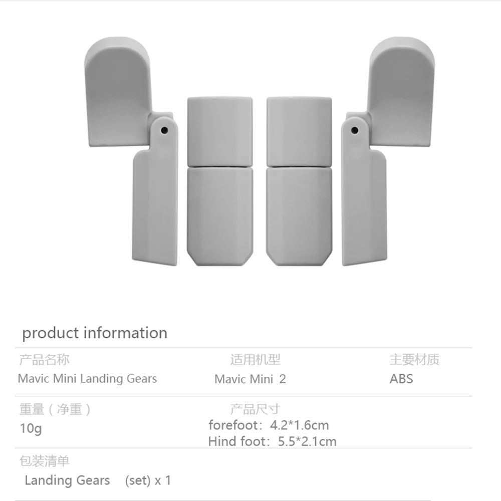 Материал: АБС-пластик,Применимые модели: только для DJI Mavic Mini,Цвет: серый,Вес нетто: 10 г,Посылка Вес: 11,7 гРазмер продукта: 4,2*1,6 см (передние средства ухода за кожей стоп), 5,5*2,1 см (задняя футов),Посылка: 9*13 см,