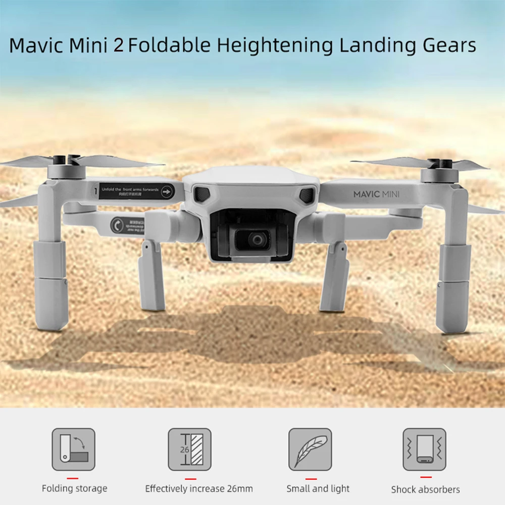 1. Увеличьте высоту между фюзеляжем и землей для защиты DJI Mavic Mini turmals и PTZ camera от воздействия на посадку,2. Для эффективного увеличения 2,6 см высота, эффективно предотвратить дорожный мусор от загрязнения тела или повреждения gimbal во время взлёта и посадки,3. Складные посадочные шестерни для удобного хранения.