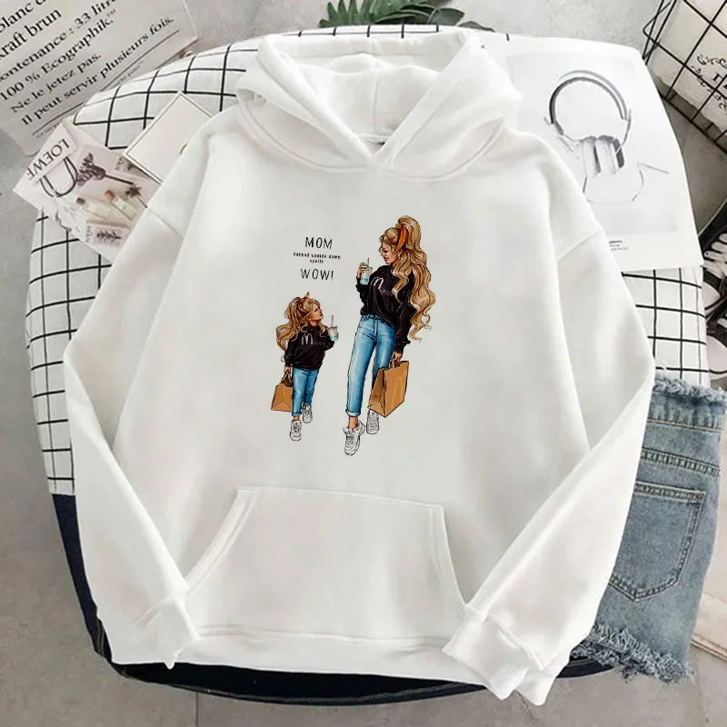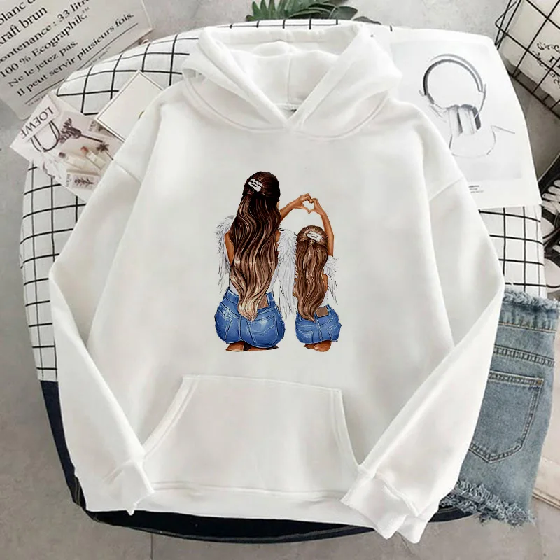 Толстовки Kawaii для мамы и дочки, толстовки с капюшоном принцессы, белые толстовки, топы, одежда, уличная одежда, топ, одежда больших размеров, женская