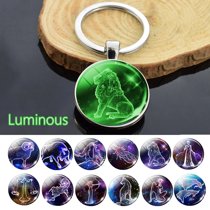 Светится в темноте брелок для ключей 12 созвездий, двухсторонний светящийся брелок со знаком зодиака, подвеска, брелок, подарок на день рождения