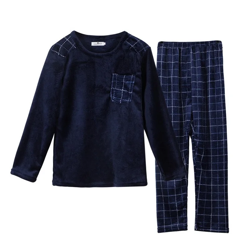 Пижамный комплект мужской, теплый фланелевый утепленный пижамный комплект, одежда для сна с длинным рукавом, топ и штаны, домашняя одежда для отдыха, размеры до 3XL, Осень-зима