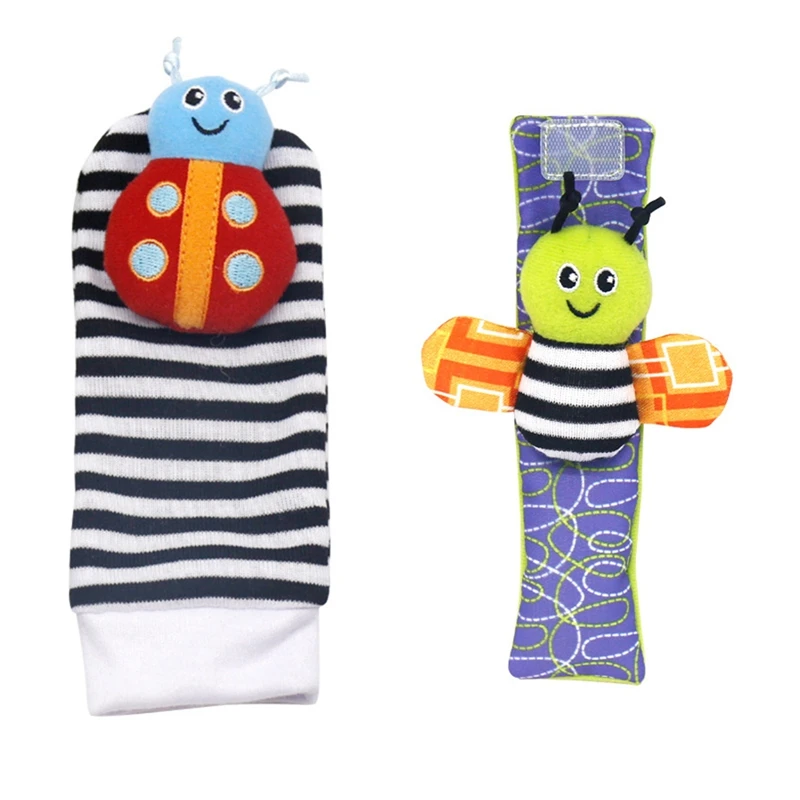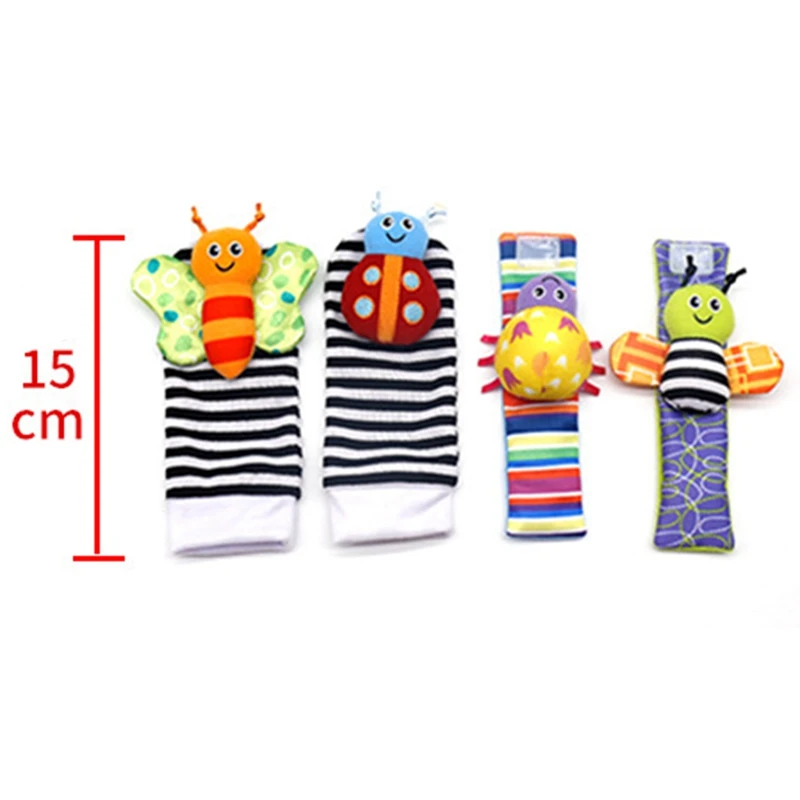 4 шт.компл., милые мягкие детские носки в виде животных, игрушки, погремушки на запястье и искатели ног, набор игрушек с бабочками и бабочками