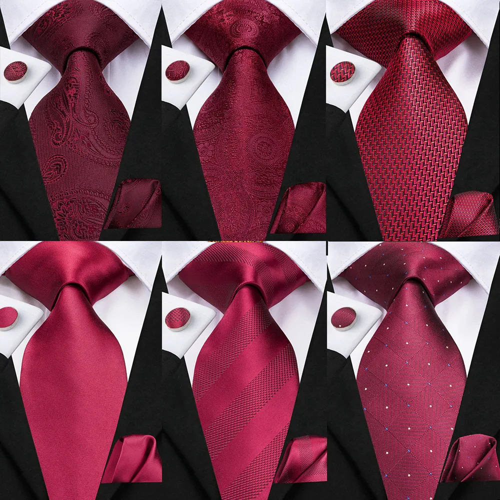 Hi-Tie Мужской подарочный набор галстуков красное вино бордовый Пейсли Шелковый Свадебный галстук для мужчин модный дизайн качество Hanky запонки Прямая поставка