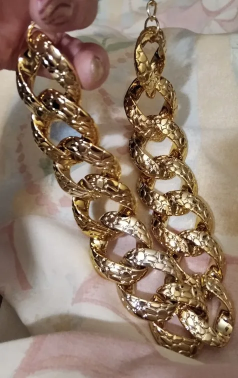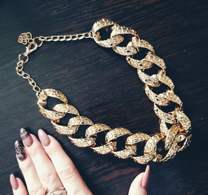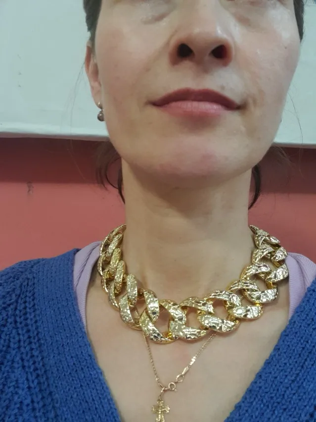 Классная цепь! Заказала в двух цветах: под золото и серебро. Выглядят очень достойно. Лёгкие, но крупные, эффектные
