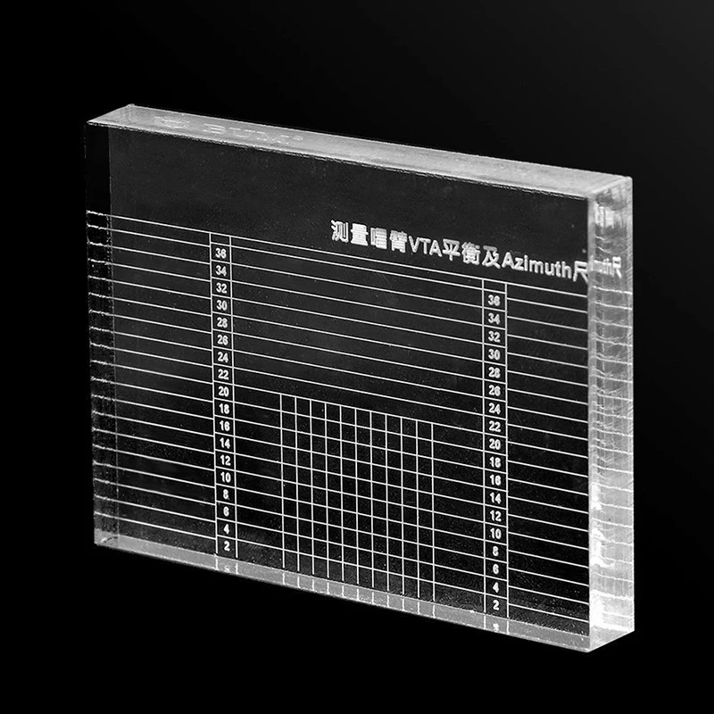 Особенности и преимущества:▪ Блок выравнивания головного убора, используемый для выравнивания VTA и Azimuth (вертикальное выравнивание отслеживания)▪ Точная работа с использованием прозрачного акрила с кристально чистым принтом▪ Высокая четкость; Материал: акрил▪ Упаковочный лист: 1 линейка Azimuth