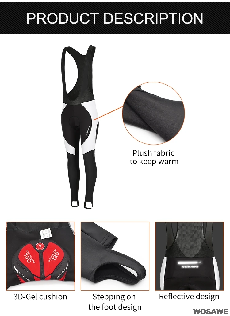 WOSAWE Велоспорт Bib колготки имеет эргономичный дизайн с флисовой ткани, предназначен для уменьшения трения и улучшения посадки и сделать тепло для повышения производительности.