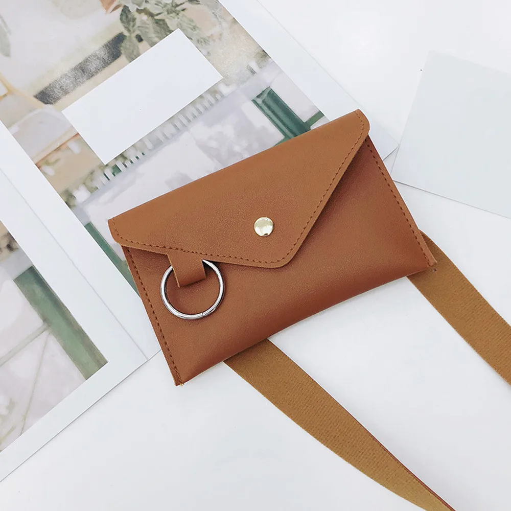 Женская Кожаная поясная сумка, модный однотонный мессенджер из искусственной кожи с кольцом, нагрудная сумочка