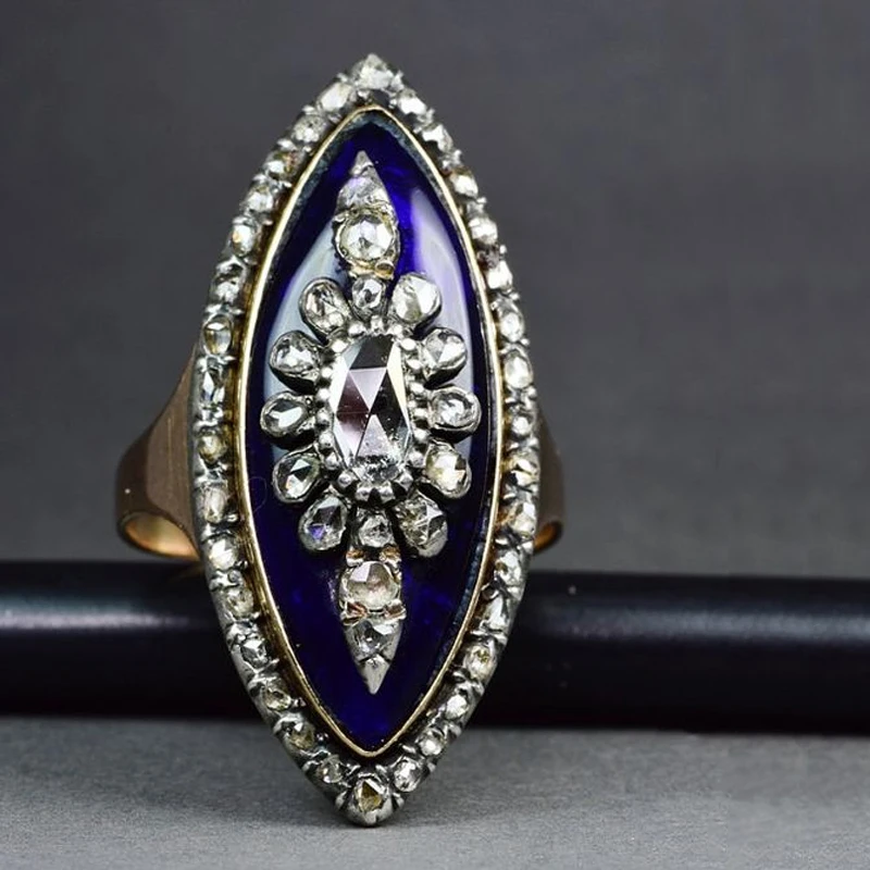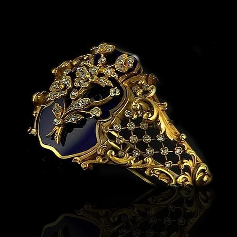 Мужское Винтажное кольцо с синей эмалью, гравировкой и цветком