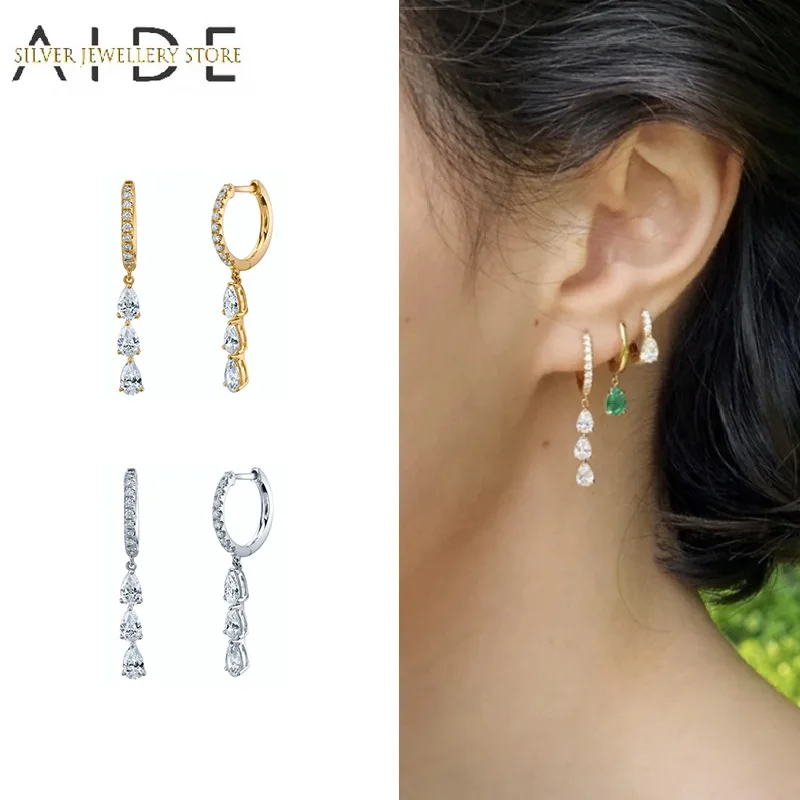 AIDE роскошный капли воды серьги в виде колец, для Для женщин геометрический цирконием 925 стерлингового серебра серьги, хорошее ювелирное изделие, модные серьги в форме