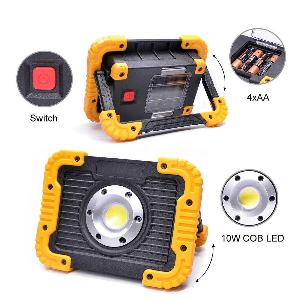 Поддержка батареи: 4 батарейки типа АА(Батарея в комплект не входит).Портативная ручка: регулируемая стойка для лампы на 180 градусов позволяет разместить ее в любом месте, где вам нравится, подвесить на грузовике или в ручном режиме и т. д., легко справиться с различными условиями работы.Прочный материал: высококачественный пластиковый корпус, антивозрастной, антикоррозийный и ударопрочный; Светодиодный COB бисер и прозрачные линзы обеспечивают высокую яркость и яркость.IP65 Водонепроницаемость: устойчив к дождю в день или любой другой естественной погоде;Широкое применение: кемпинг на открытом воздухе, техническое обслуживание объекта, приключения на открытом воздухе, аварийное освещение, ремонт автомобилей и т. д.Спецификация: