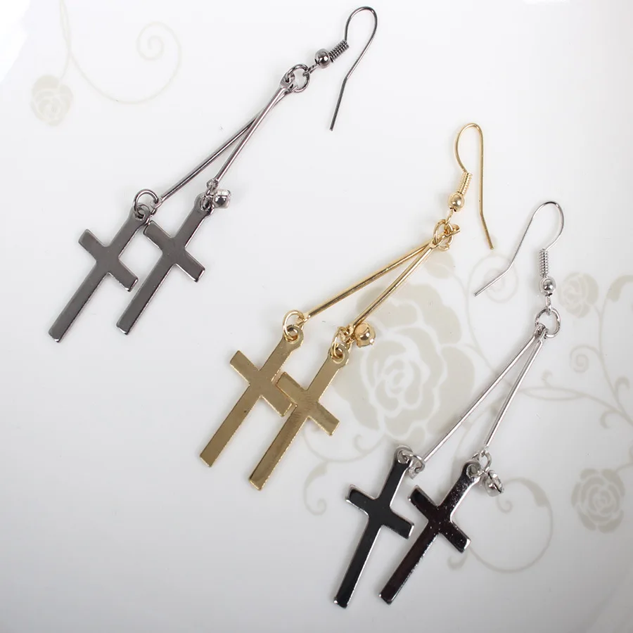 Серьги-подвески унисекс, в стиле панк, готический крест, металличес...