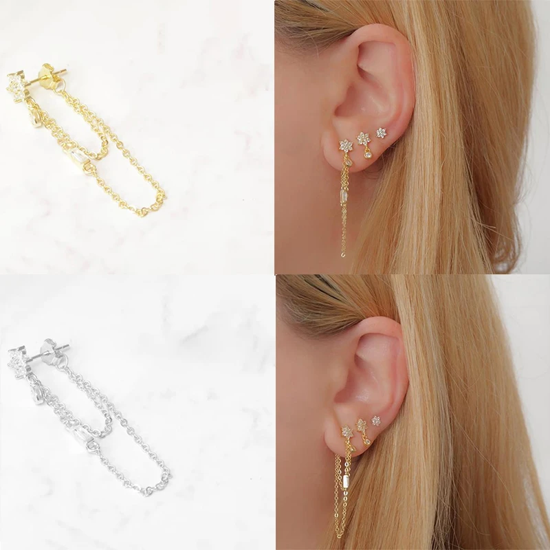 ROXI Ins кристаллы в форме цветов, серьги со шпилькой, для женщин, длинная звеньевая цепь свадебные серьги необычной 925 стерлингового серебра серьги с квадратными кристаллами