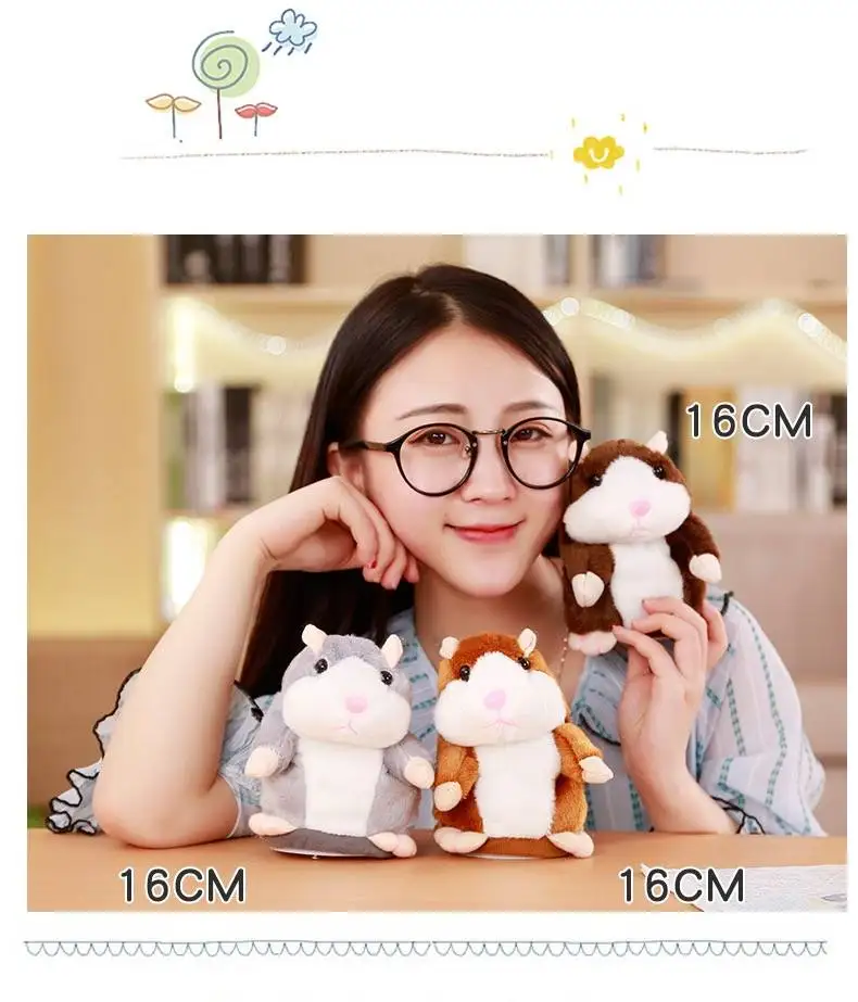 Говорящий хомяк 15 см, мышь, плюшевая игрушка для домашних животных...
