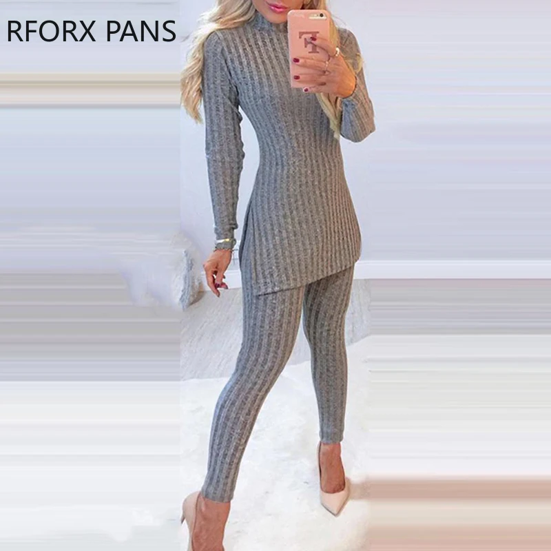Комплект женский трикотажный однотонный, футболка с длинным рукавом и обтягивающие брюки