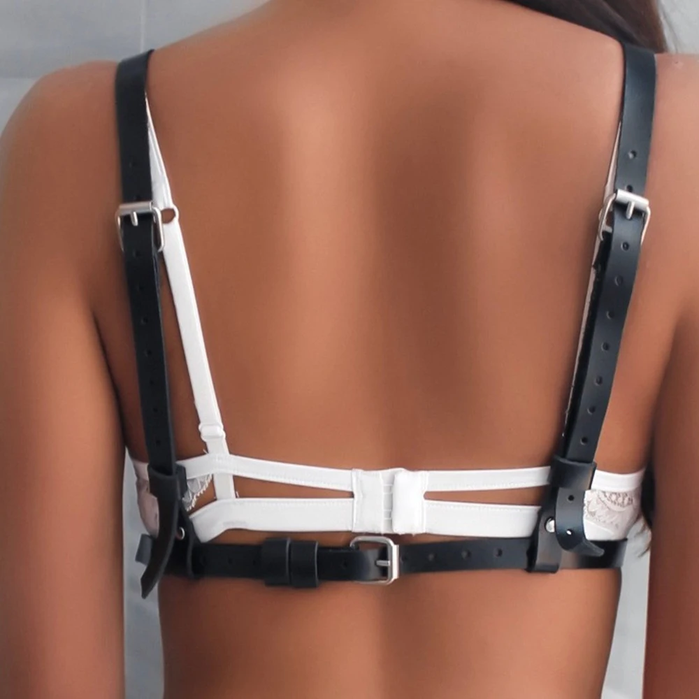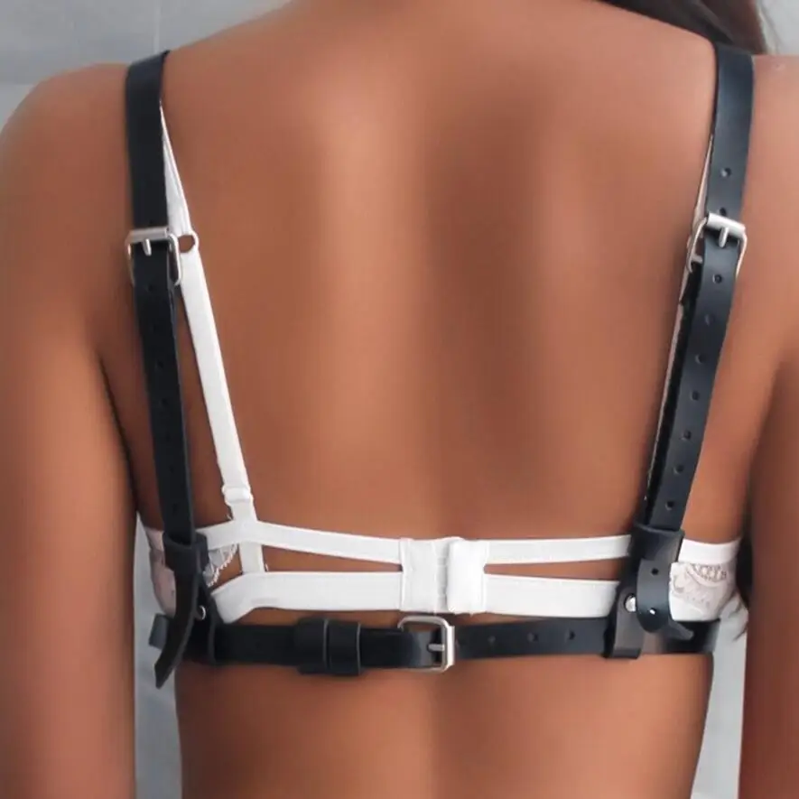 Хип-хоп панк кожа нагрудного ремня женская подвязка для Тела Бондаж Harajuku бюстгальтер на бретелях с застежкой-молнией сексуальные нижнее белье в готическом стиле топ аксессуары