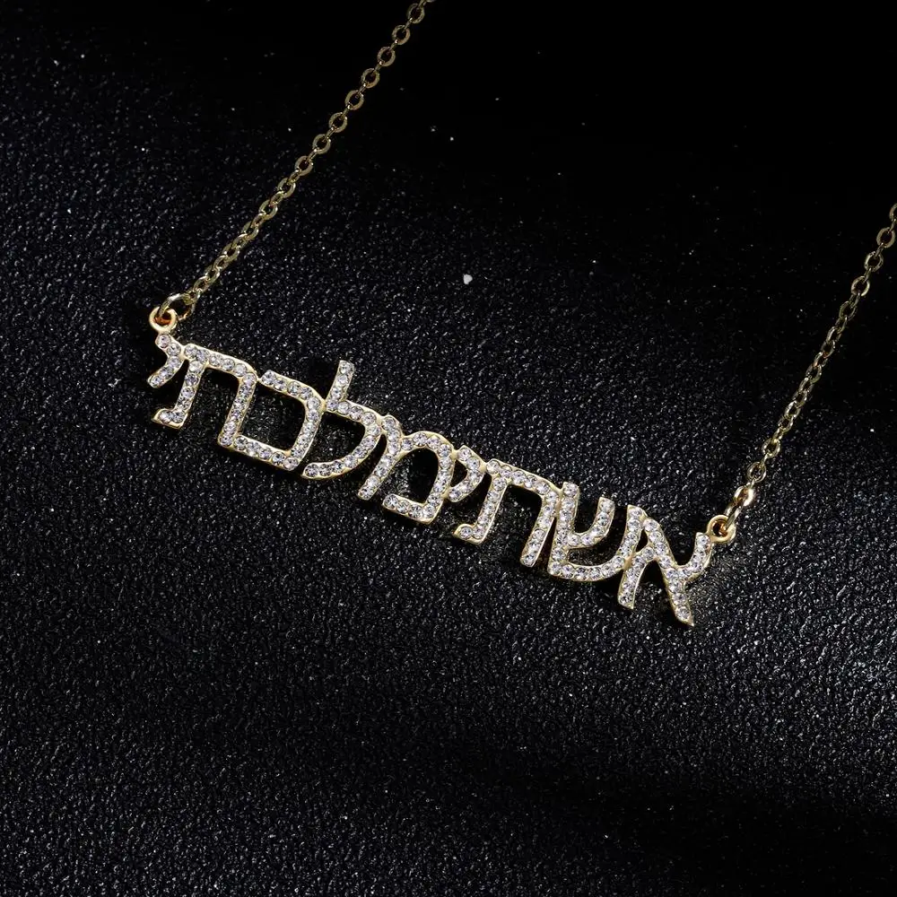 Ожерелье и подвески на заказ с изображением имени иврита, золотая цепочка на заказ, Женские Ювелирные изделия, сверкающие ожерелья-подвески с изображением инициала