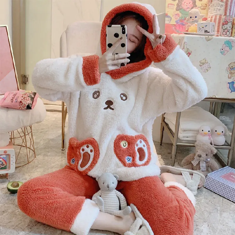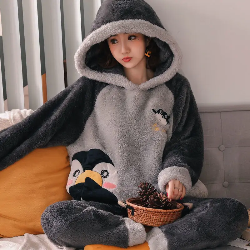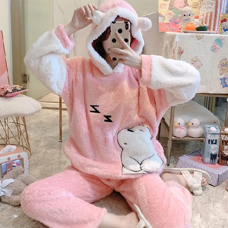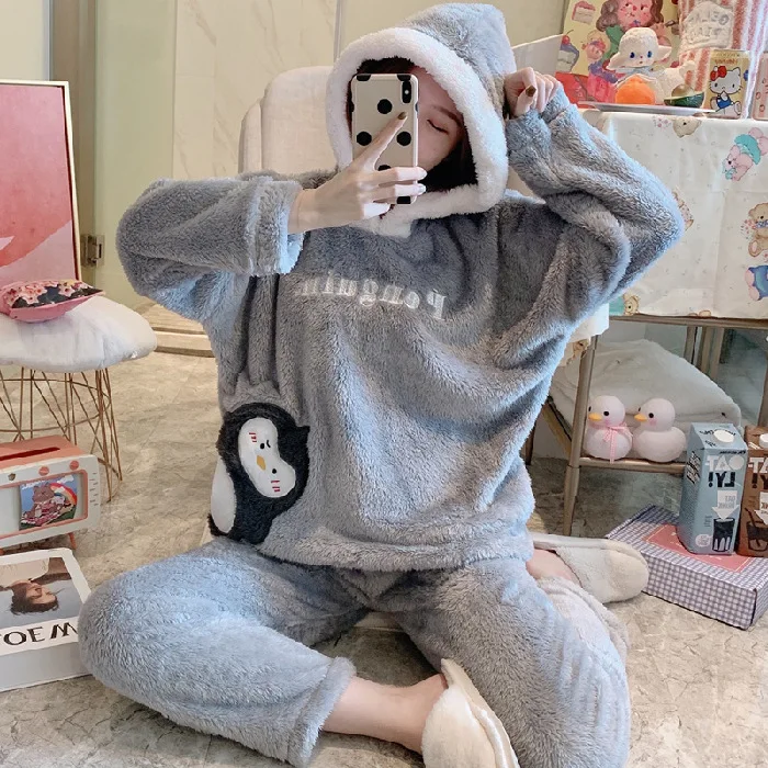 Осенне-зимний женский пижамный комплект, домашний костюм, одежда для сна, плотная теплая ночная рубашка, женская пижама с мультяшными пандами и животными, домашняя одежда