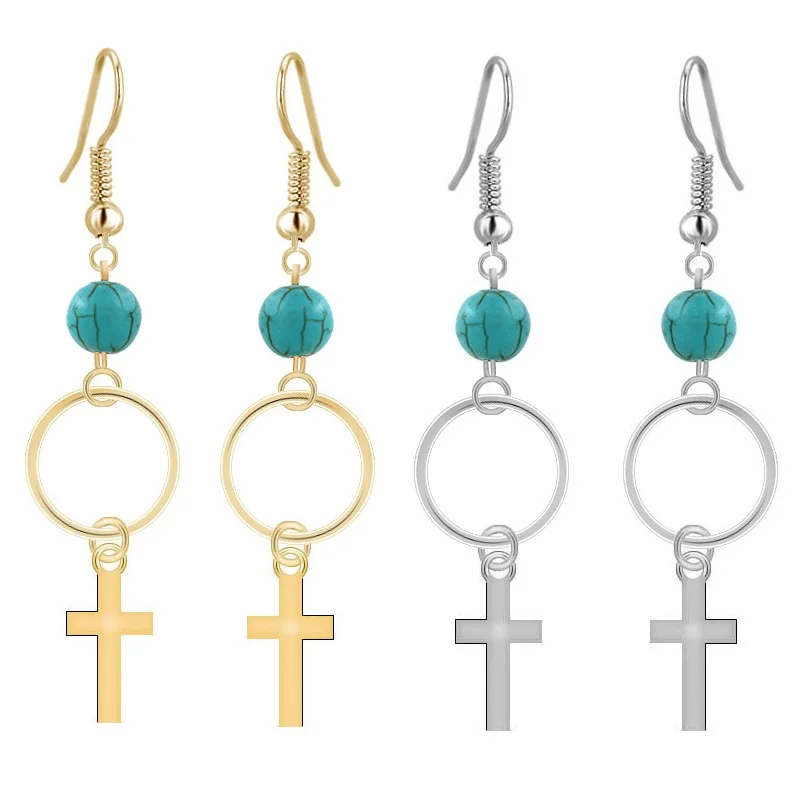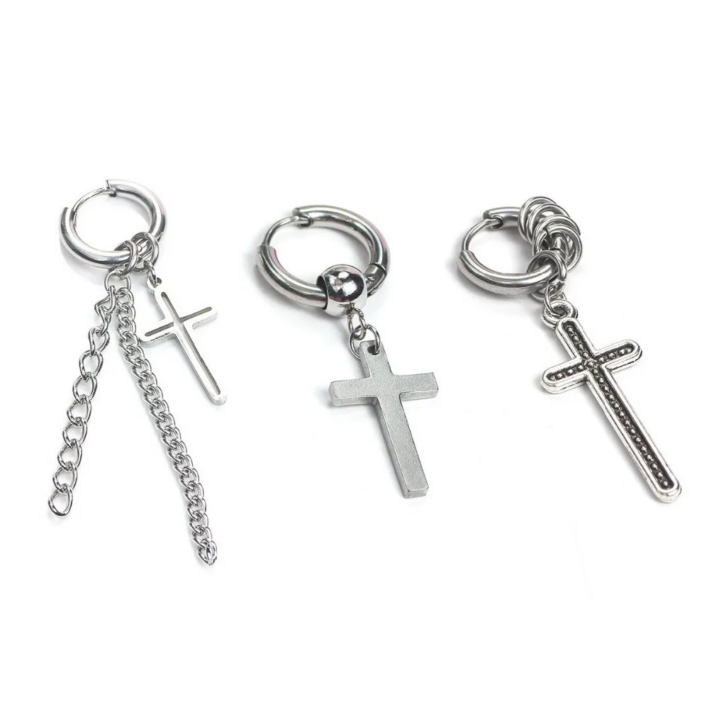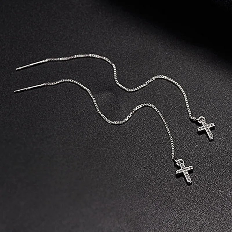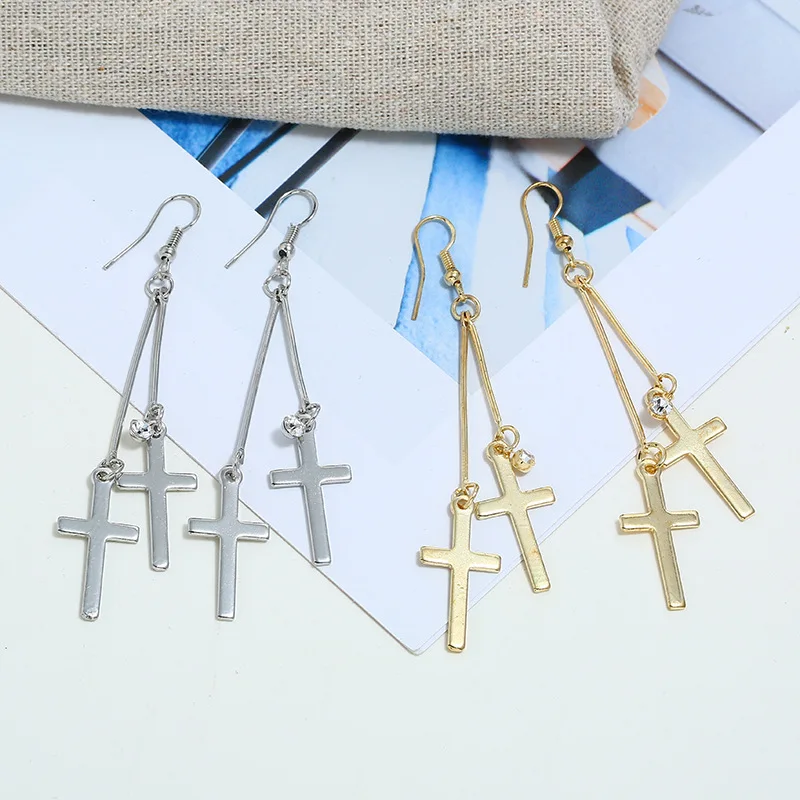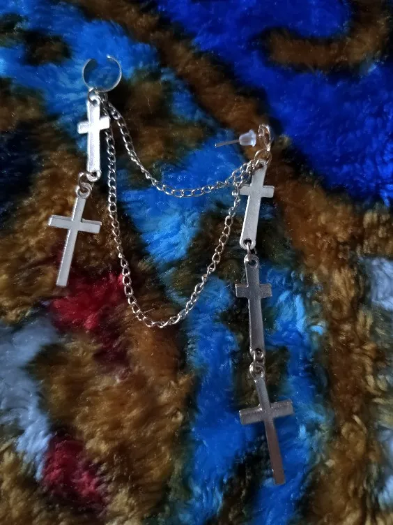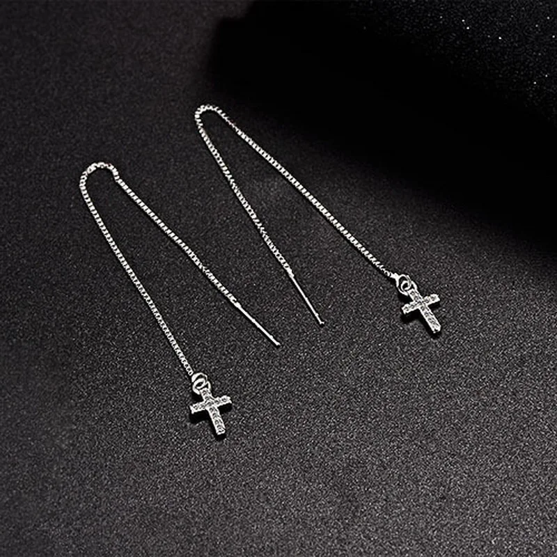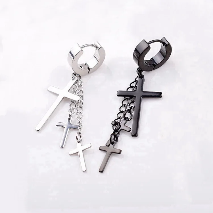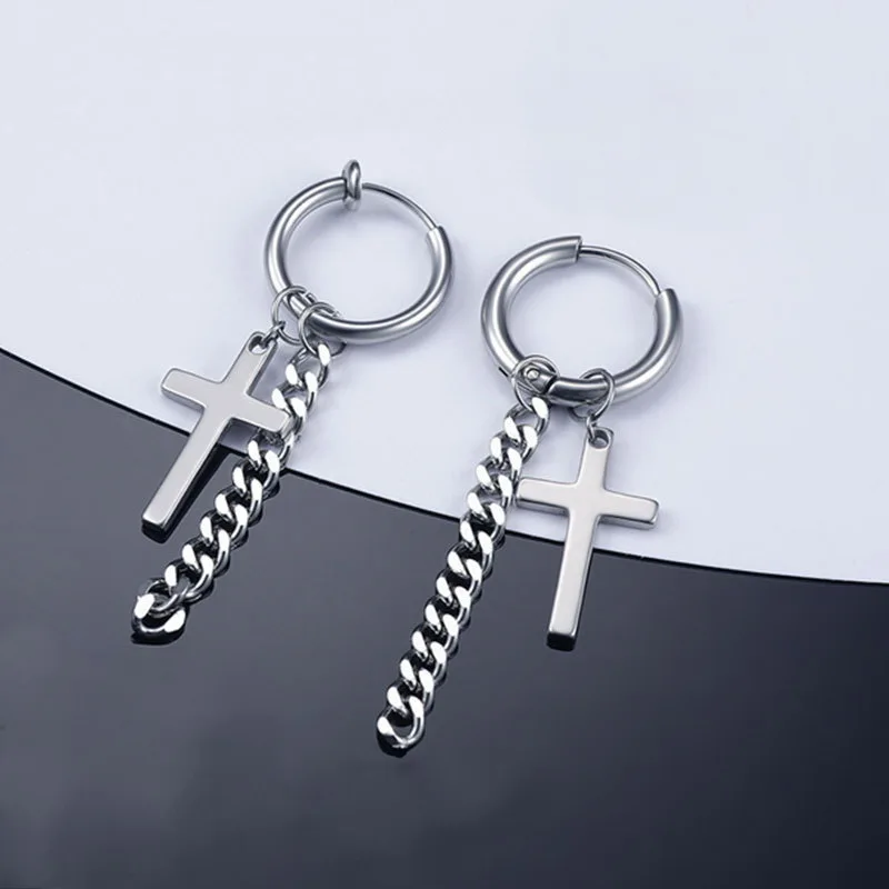 Серьги-подвески унисекс, в стиле панк, готический крест, металлическая цепочка в христианском стиле, уличные украшения в стиле хип-хоп, 1 шт.